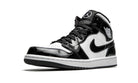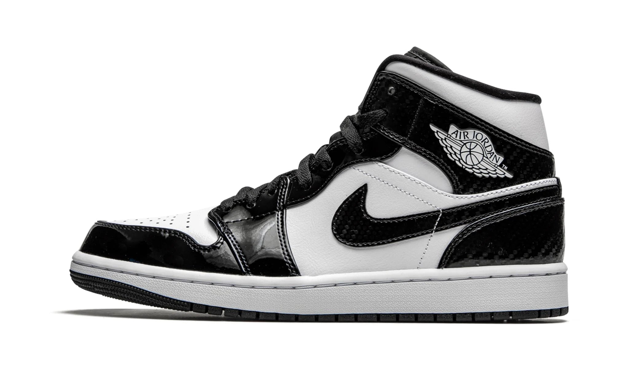 The Air Jordan 1 Mid “All-Star 2021” is a special edition of Michael Jordan’s first signature shoe that is dedicated to the 2021 NBA All-Star Game. The “All-Star 2021” colorway is dressed in a two-tone white-and-black color scheme on the popular mid-top version of the Air Jordan 1. The “All-Star 2021” features a glossy black synthetic leather material across the upper with contrasting matte white panels. The black Swooshes and ankle and heel panels also feature a faux carbon fiber texture for an added dimension to the colorway. A circular “Jumpman” logo appears on the black nylon tongue.