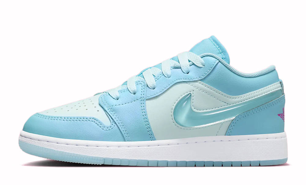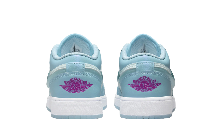 The Jordan 1 Low SE Aquarius Blue (GS) is a special-edition low-top sneaker in grade-school sizing with an aquatic inspired Aquarius Blue, Glacier Blue, and Hyper Violet color palette.