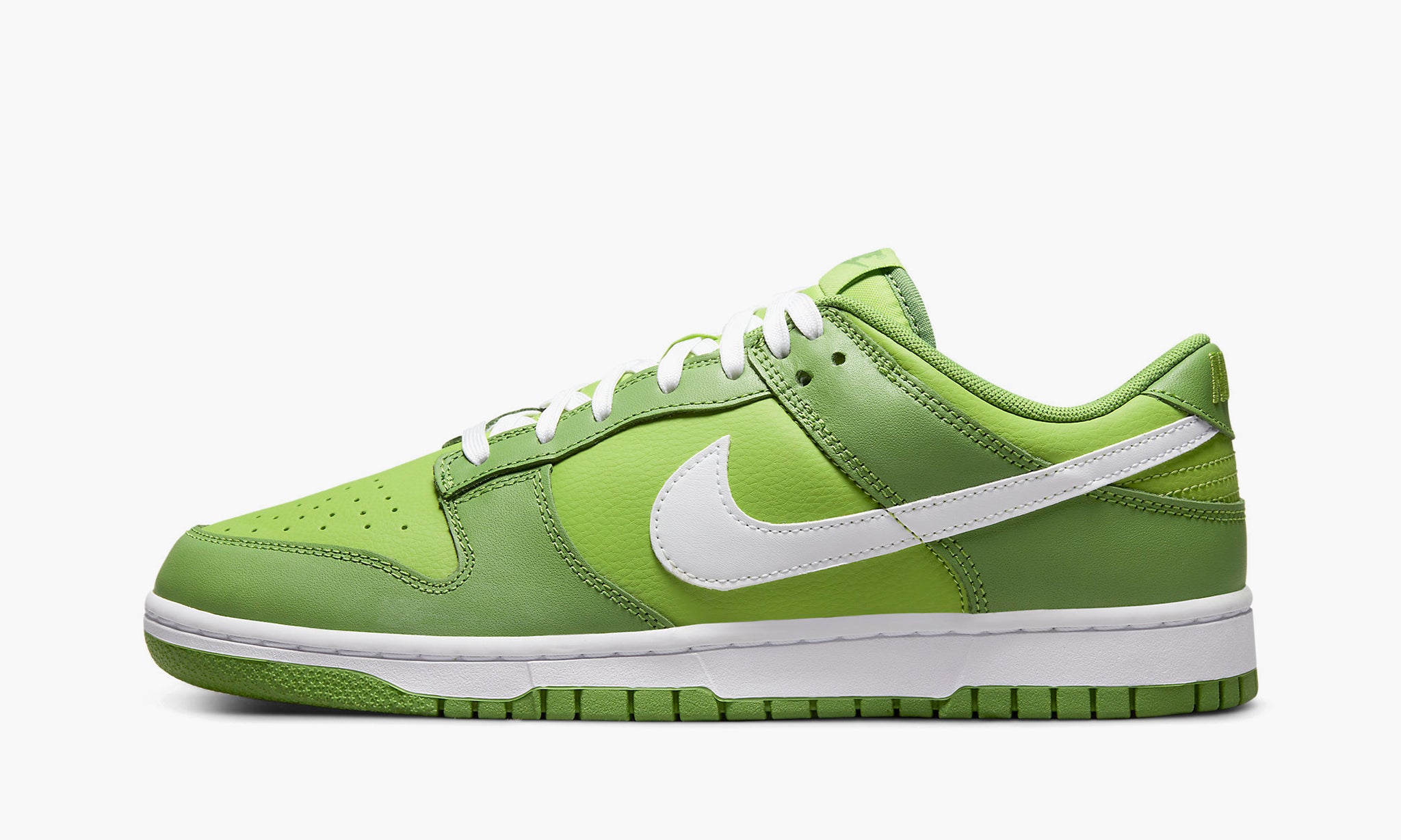 The Nike Dunk Low “Chlorophyll” is a bright take on the classic basketball shoe turned casual favorite. This sneaker features a Vivid Green leather base paired with a darker shade of green leather that Nike has dubbed Chlorophyll. White provides contrast on the laces, side Swooshes, and rubber midsole. A perforated toe box offers breathability. Release date: July 8, 2022