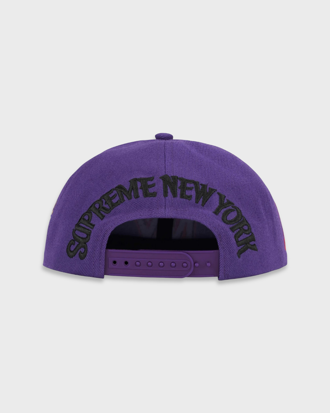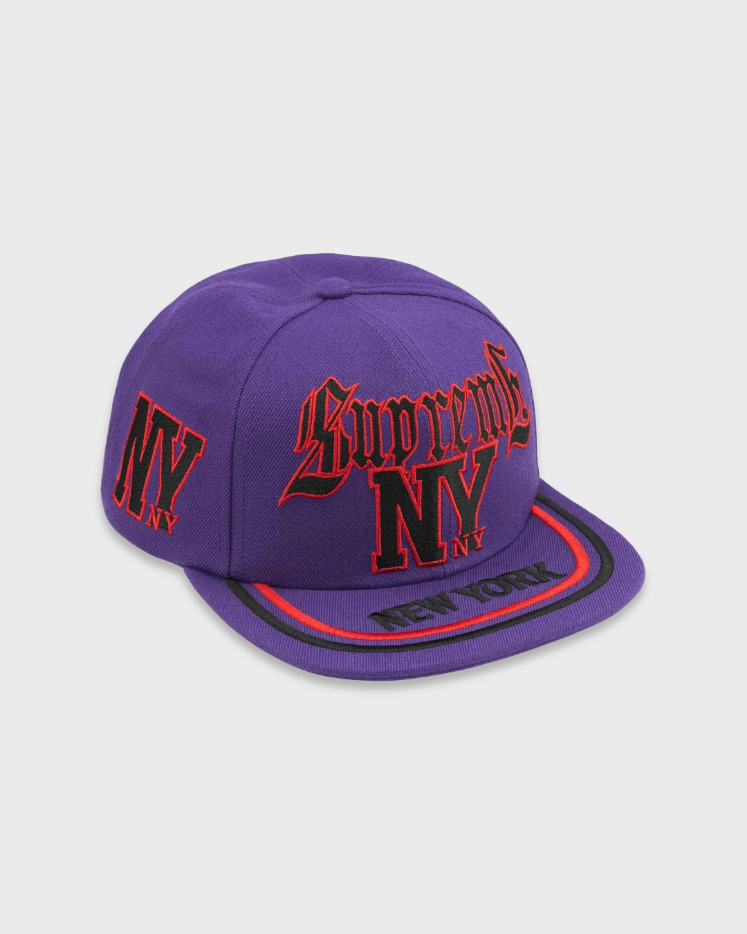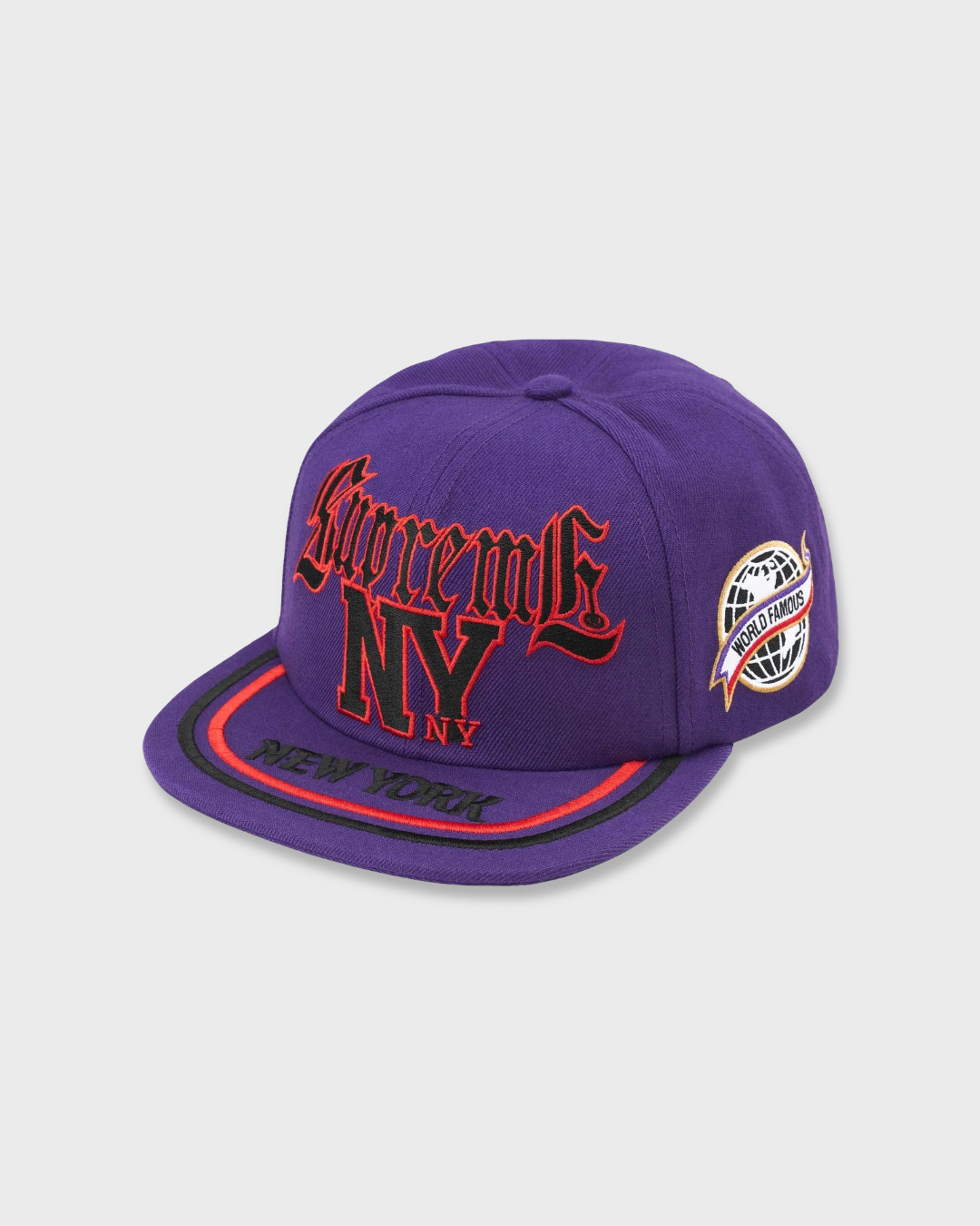 Wool blend 6-Panel hat with snap closure. Embroidered logo on front and back. Embroidered graphic on visor and sides.