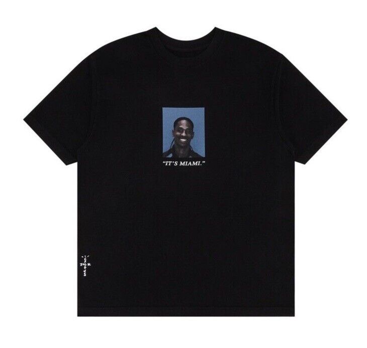The Free The Rage II Tee by Travis Scott is made from 100% cotton and has a relaxed fit with short sleeves. The tee displays a large graphic print on the front with the text "IT'S MIAMI" below, embodying Scott's bold aesthetic. Part of Travis Scott's Cactus Jack brand, known for merging music, art, and fashion, this piece reflects the distinctive urban style that's been popular since its inception.