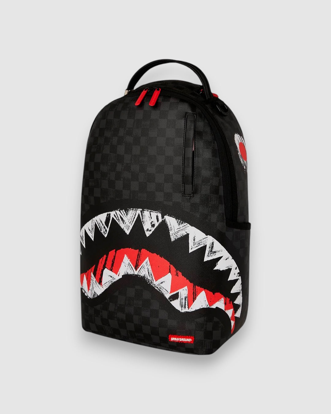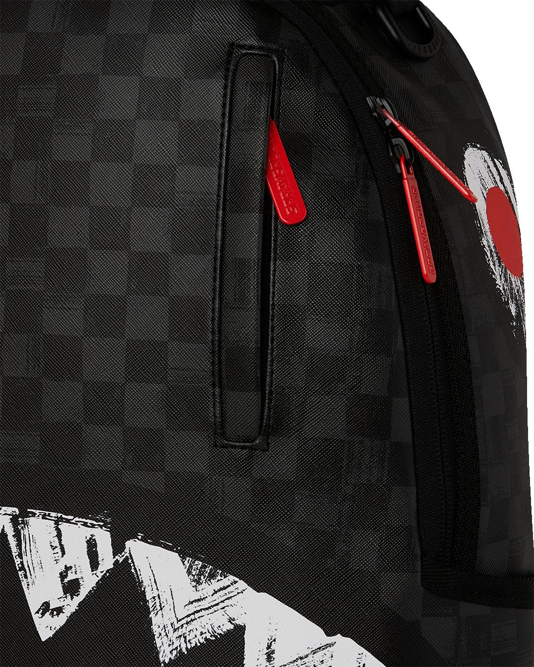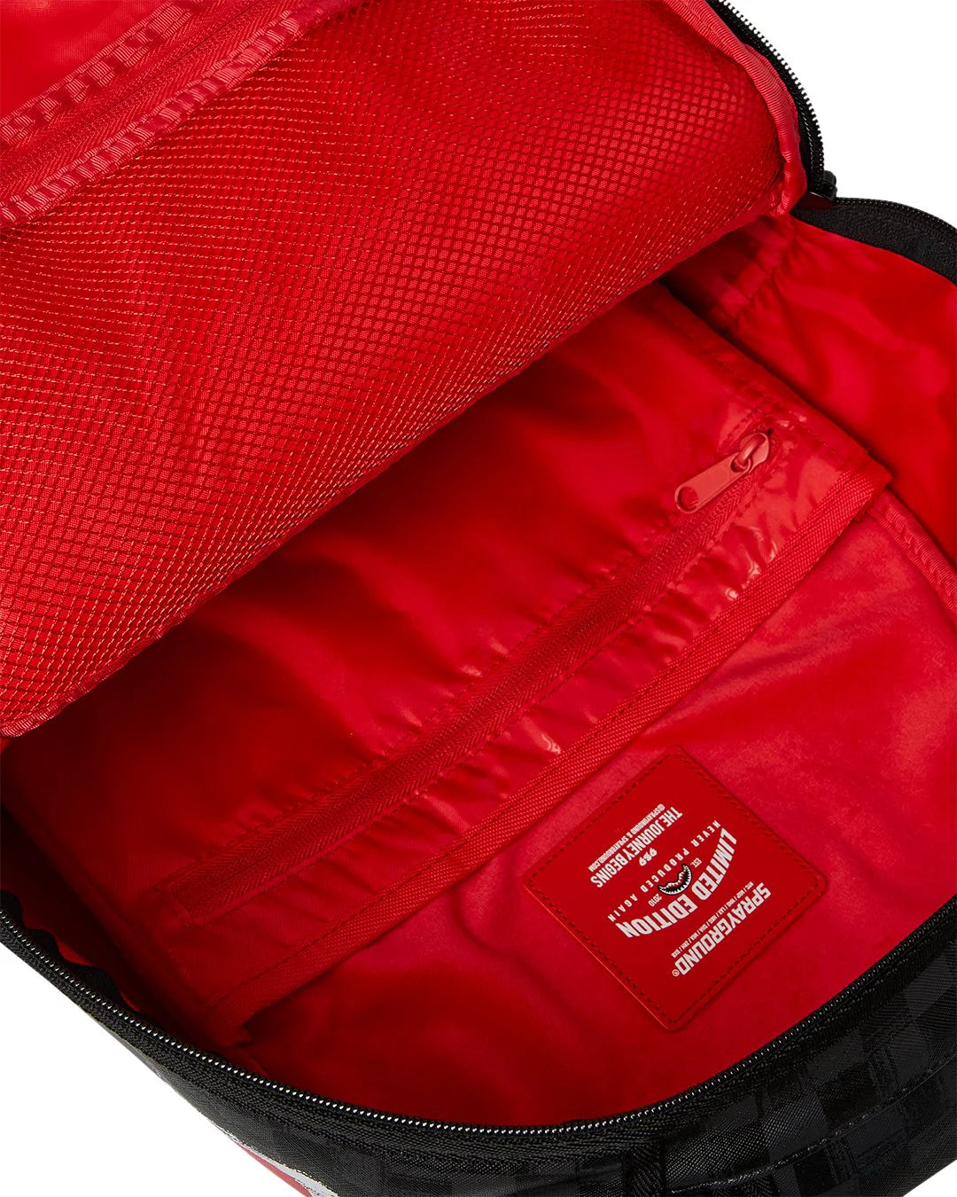 Dimensions: 18" x 6" x 11.5" • Front zipper pocket • Side pockets • Zippered Stash pocket • Separate velour sunglass compartment • Ergonomic mesh back padding • Adjustable Straps for custom sizing • Gold zippers with metal hardware • Metal "Sprayground Authentic" badge • Slide through back sleeve connects to carry-on luggage to free your hands