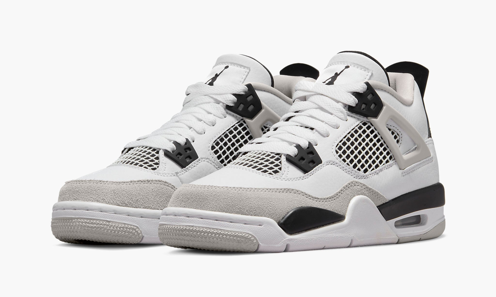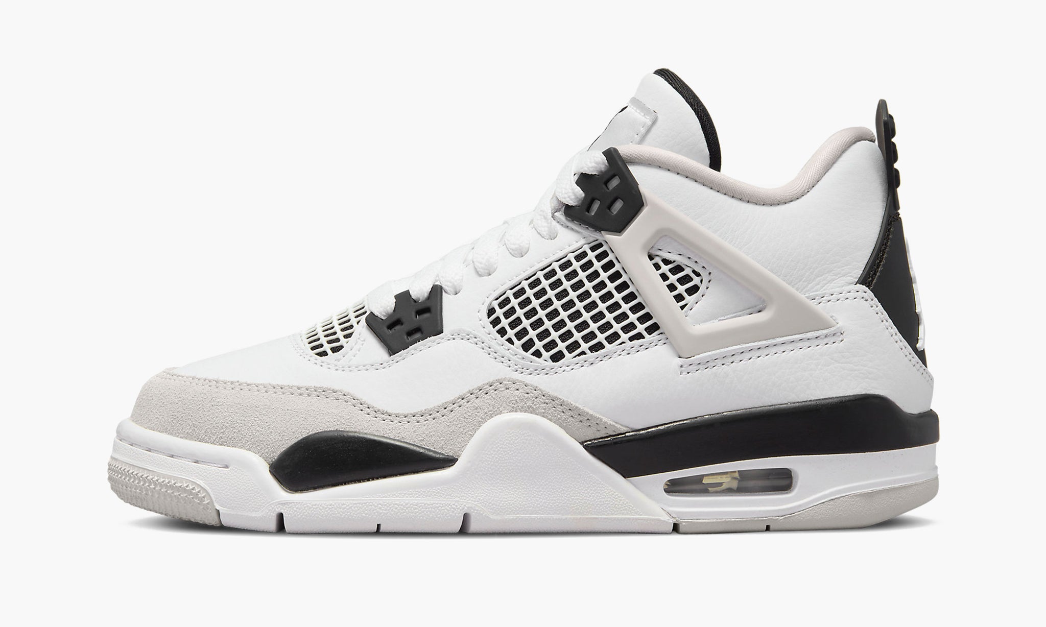 The Air Jordan 4 “Military Black” is a neutral colorway of the retro basketball shoe designed in the same color block as the model’s popular, original “Military Blue” style from 1989. The Jordan 4 “Black Military” is undoubtedly inspired by the Jordan 4 “Military” from 1989 as it features the same color design as the throwback colorway, just with black accents instead of blue. The shoe’s upper is constructed with a white leather base with grey suede on the forefoot overlay. The TPU eyelets and heel counter are accented in black. As are the underlays beneath the netting on the sides and on the tongue. Classic Jumpman logo detailing can be found on the heel and on the tongue tag. Release date: May 21, 2022