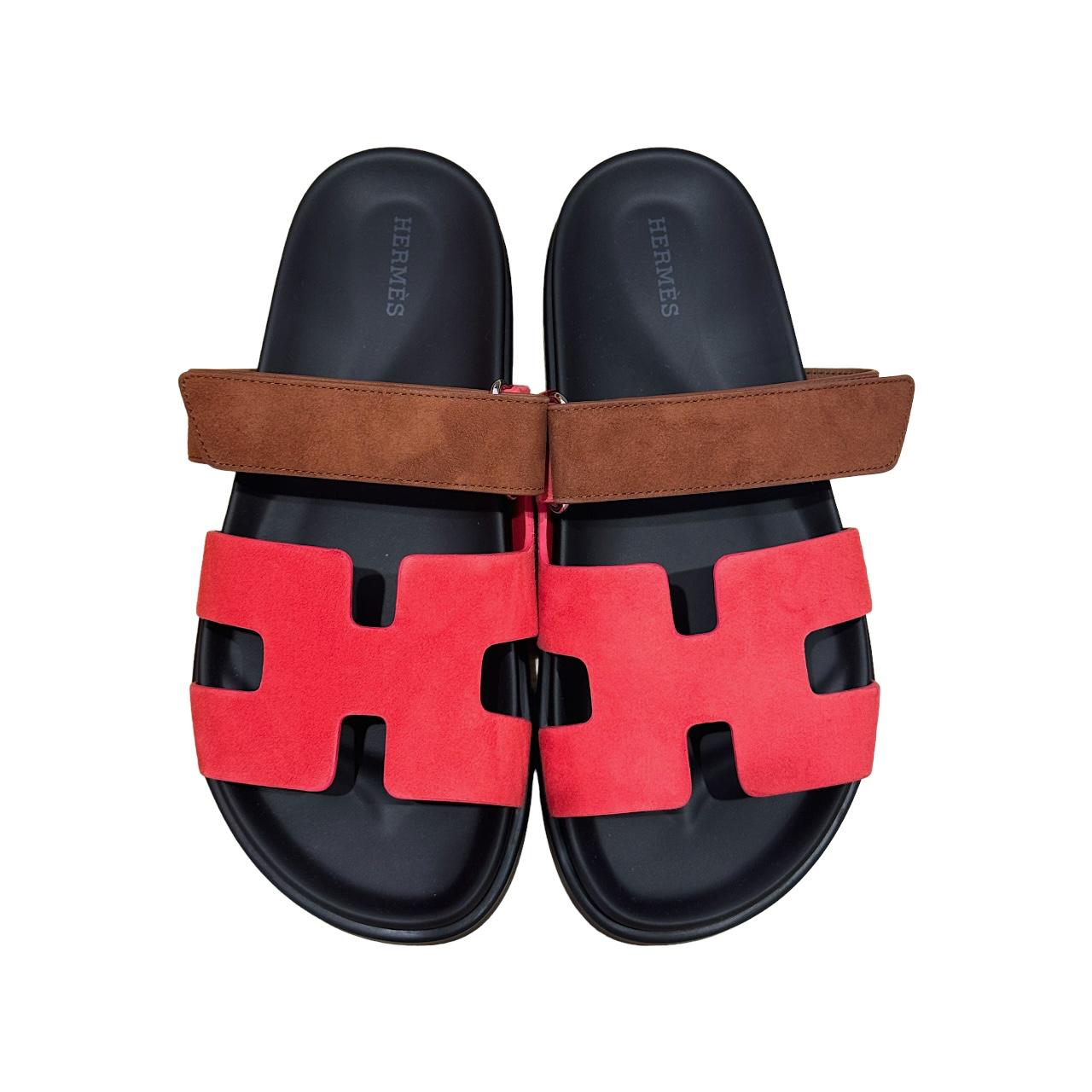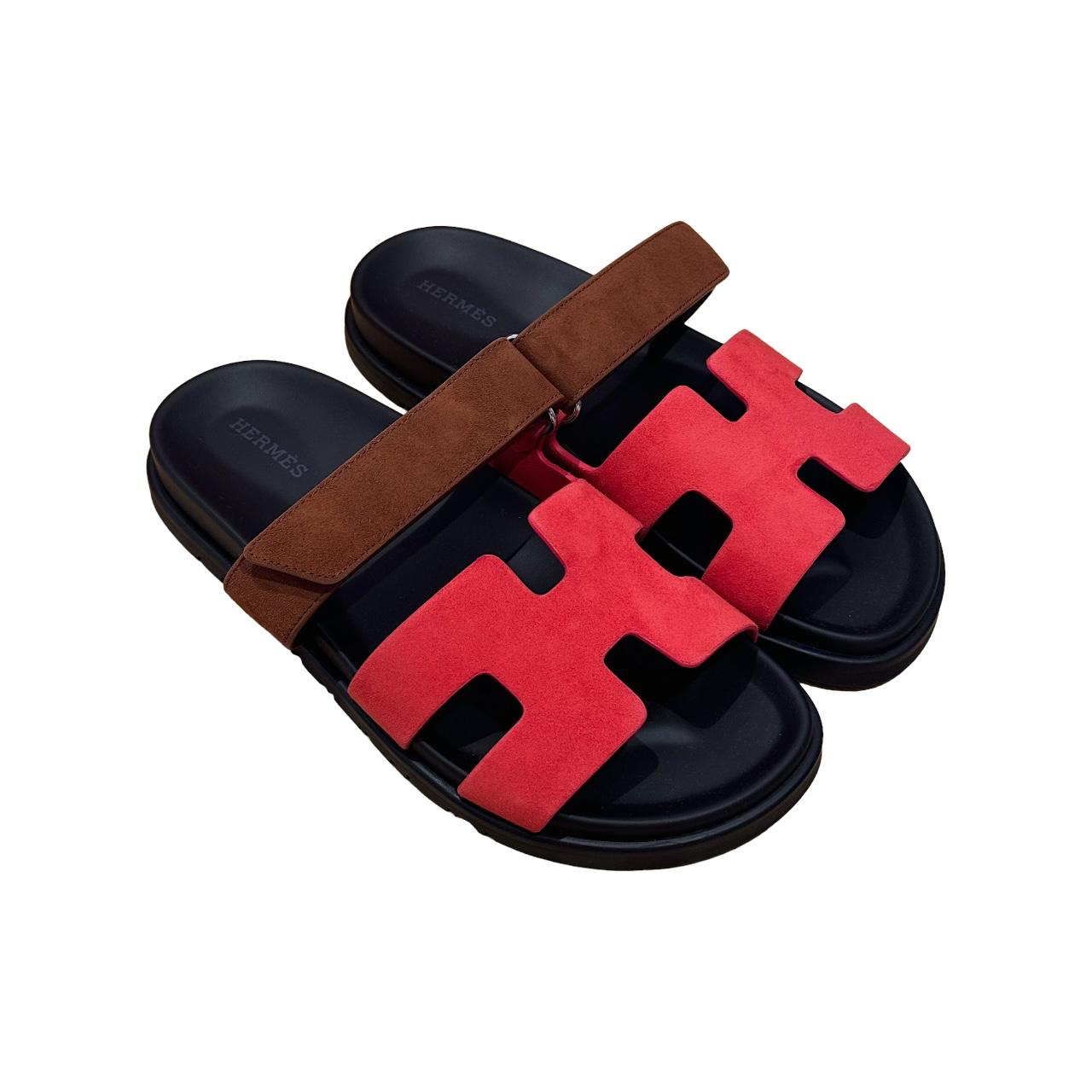Techno-sandal in suede goatskin with anatomical rubber sole and adjustable strap.