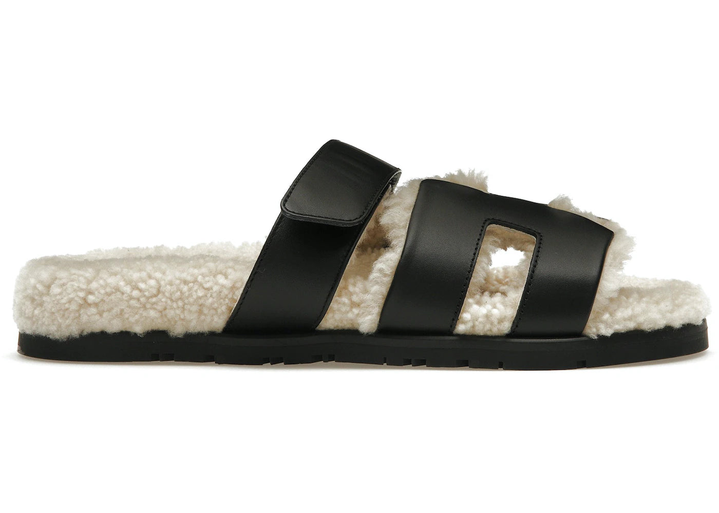 Techno-sandal in calfskin with shearling lining, anatomical rubber sole and adjustable strap.