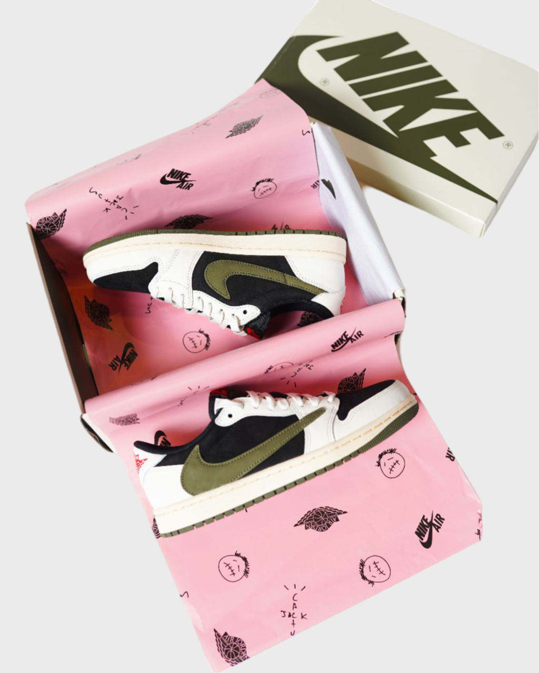 The Travis Scott x Women’s Air Jordan 1 Low “Olive" is a popular collaboration by the hip-hop star on the women’s version of the classic sneaker.