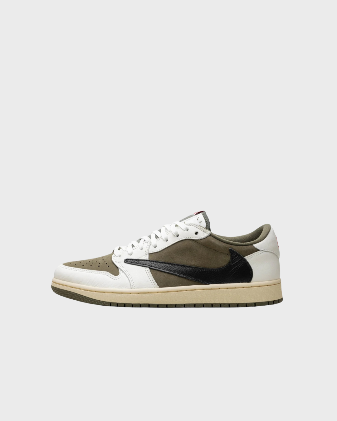 Dressed in a striking colorway of medium olive, black, sail, and muslin, this low-top design is instantly recognizable with its iconic reverse swoosh, a signature element of the Travis Scott x Jordan partnership.