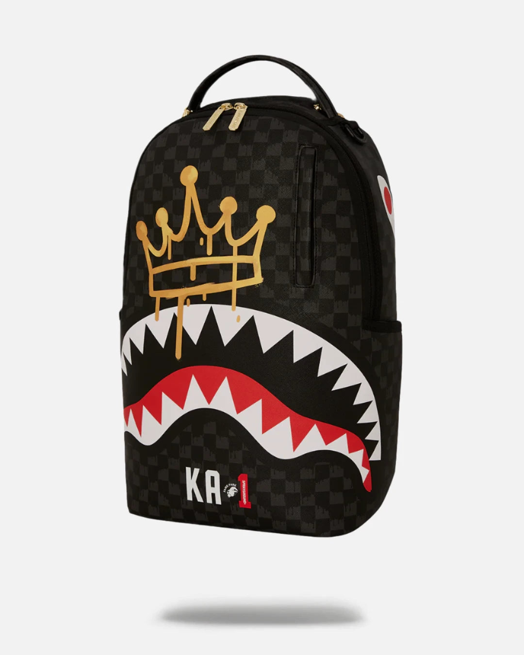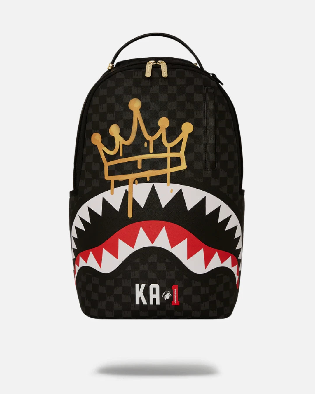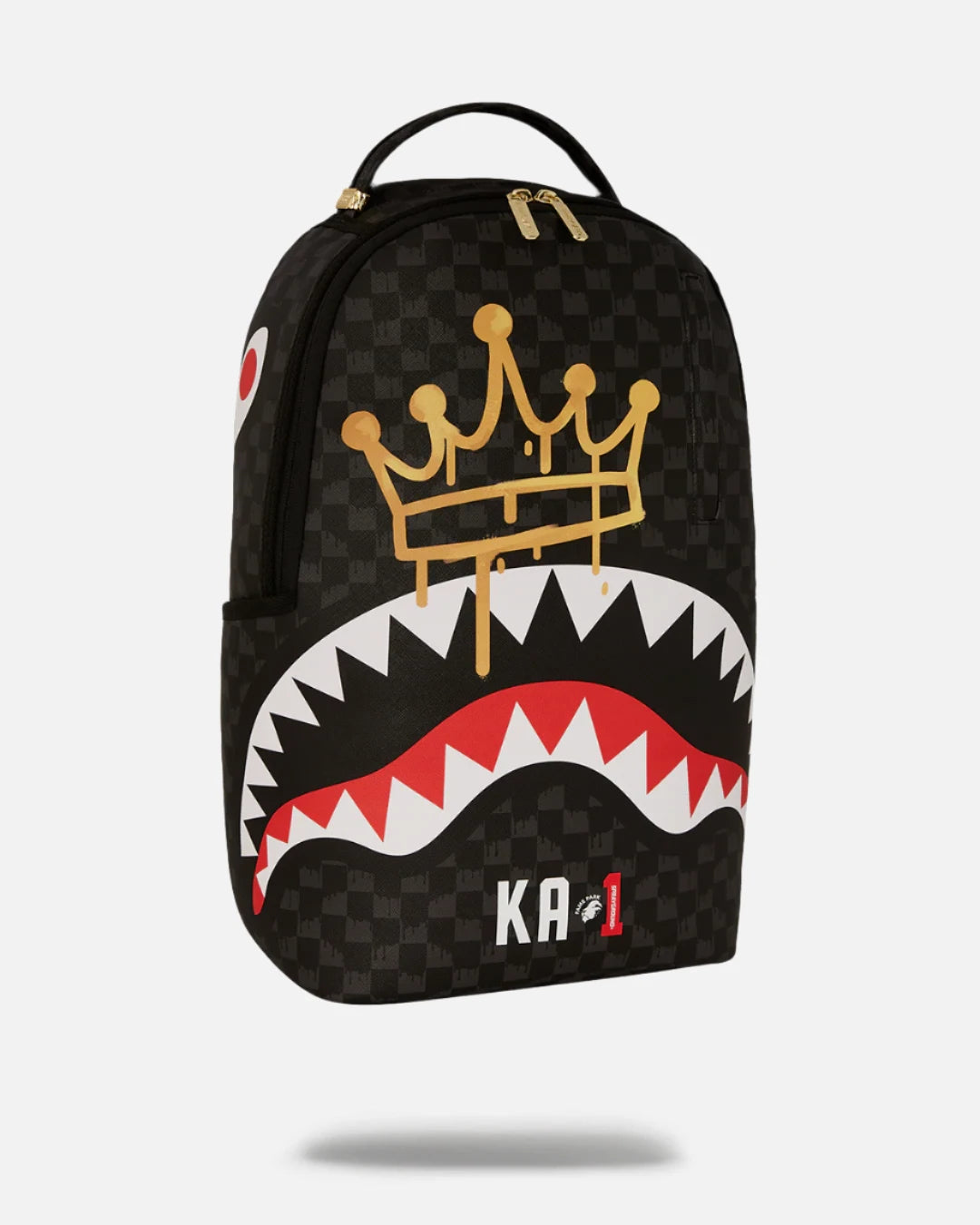 The Sprayground Drip Check Crown X KA1 Backpack in black brings luxury streetwear and functionality together. Featuring Sprayground’s signature checkered drip design fused with the Crown X KA1 graphic, this backpack makes a bold statement while offering premium storage and durability for everyday use.