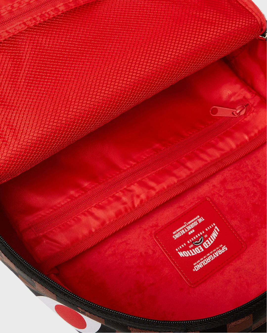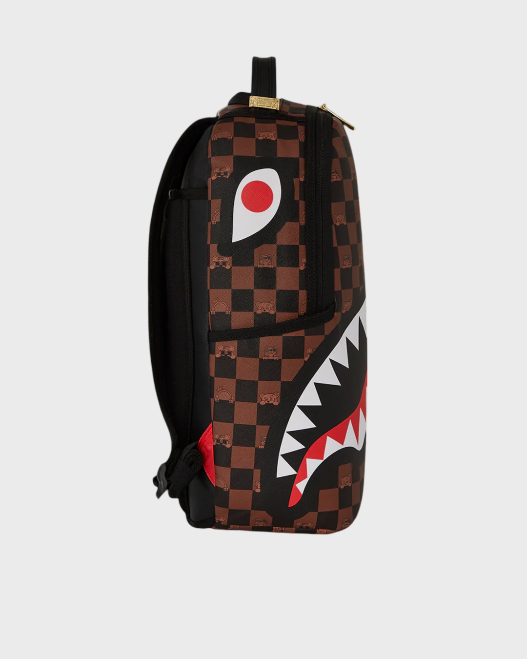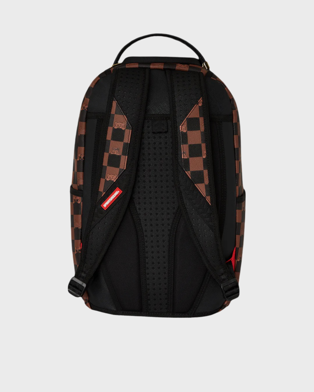 The Sprayground Midnight Sip Backpack combines edgy style with practicality, making it ideal for daily use. This sleek design comes in a dark, almost black color with contrasting accents, a signature of Sprayground's bold artistic approach. The backpack features ergonomic mesh back padding for comfort, adjustable straps for a personalized fit, and durable faux leather material that is both water-resistant and tear-resistant.