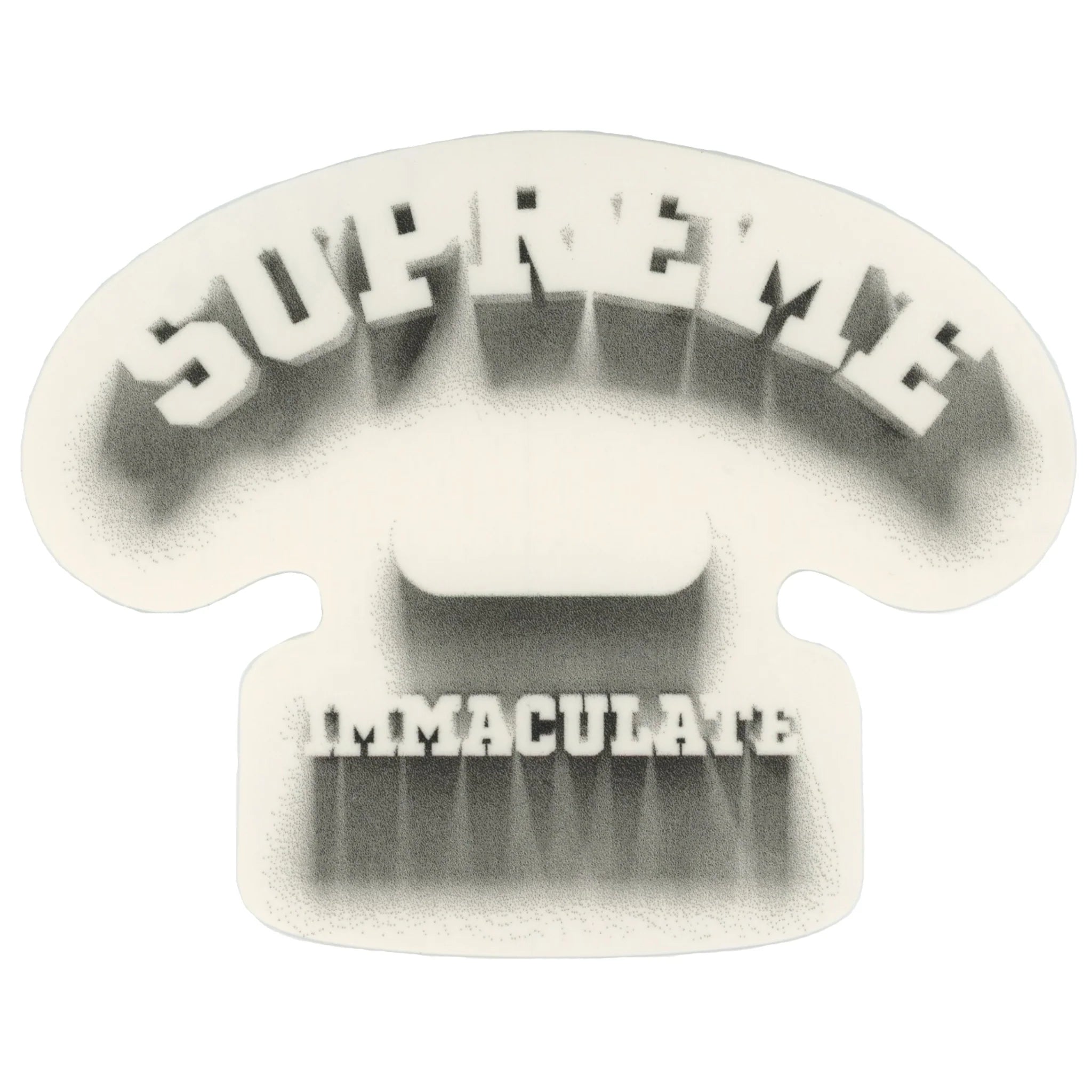 In the Spring Summer season of 2024 Supreme New York released a sticker called the Stencil Sticker. The sticker is black and white and has the word "immaculate" on it.