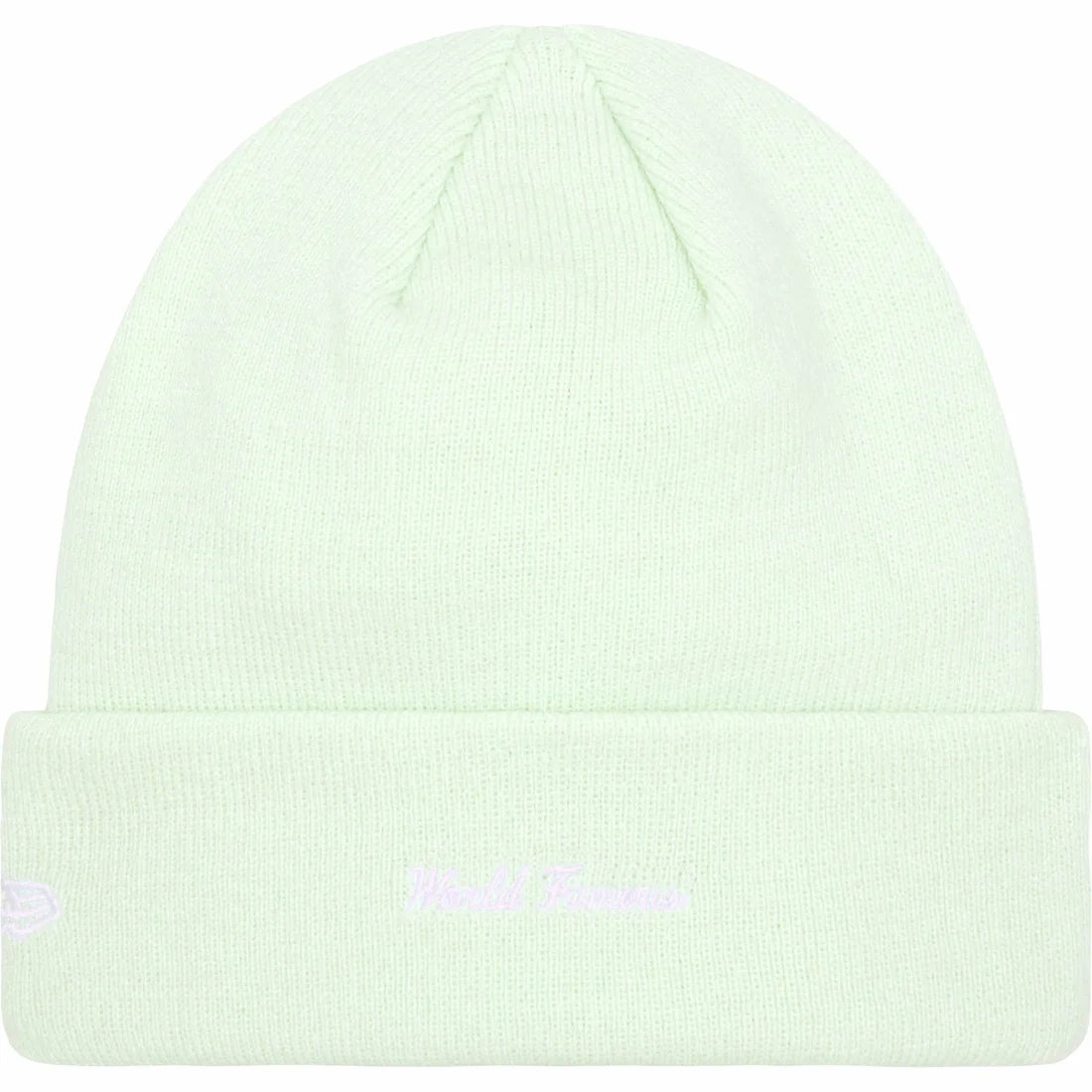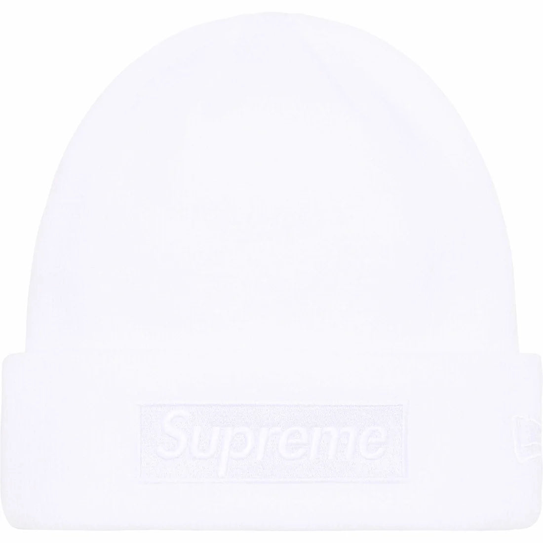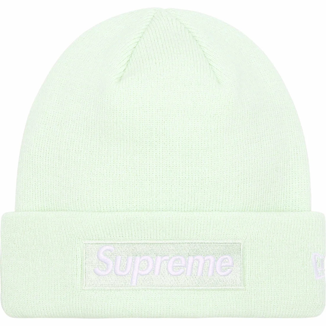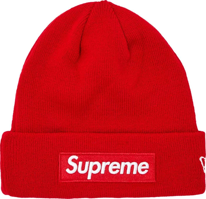 This beanie is a joint product between Supreme and New Era, emphasizing the collaboration aspect of the release.