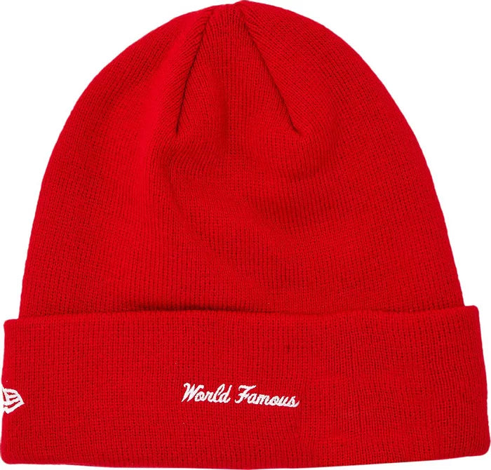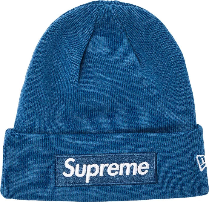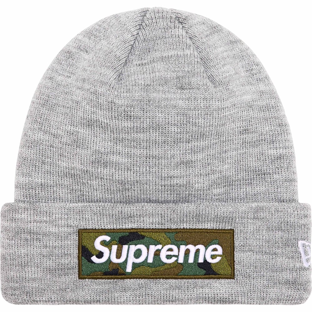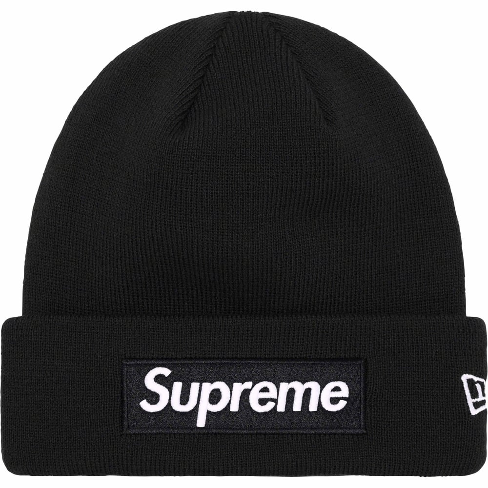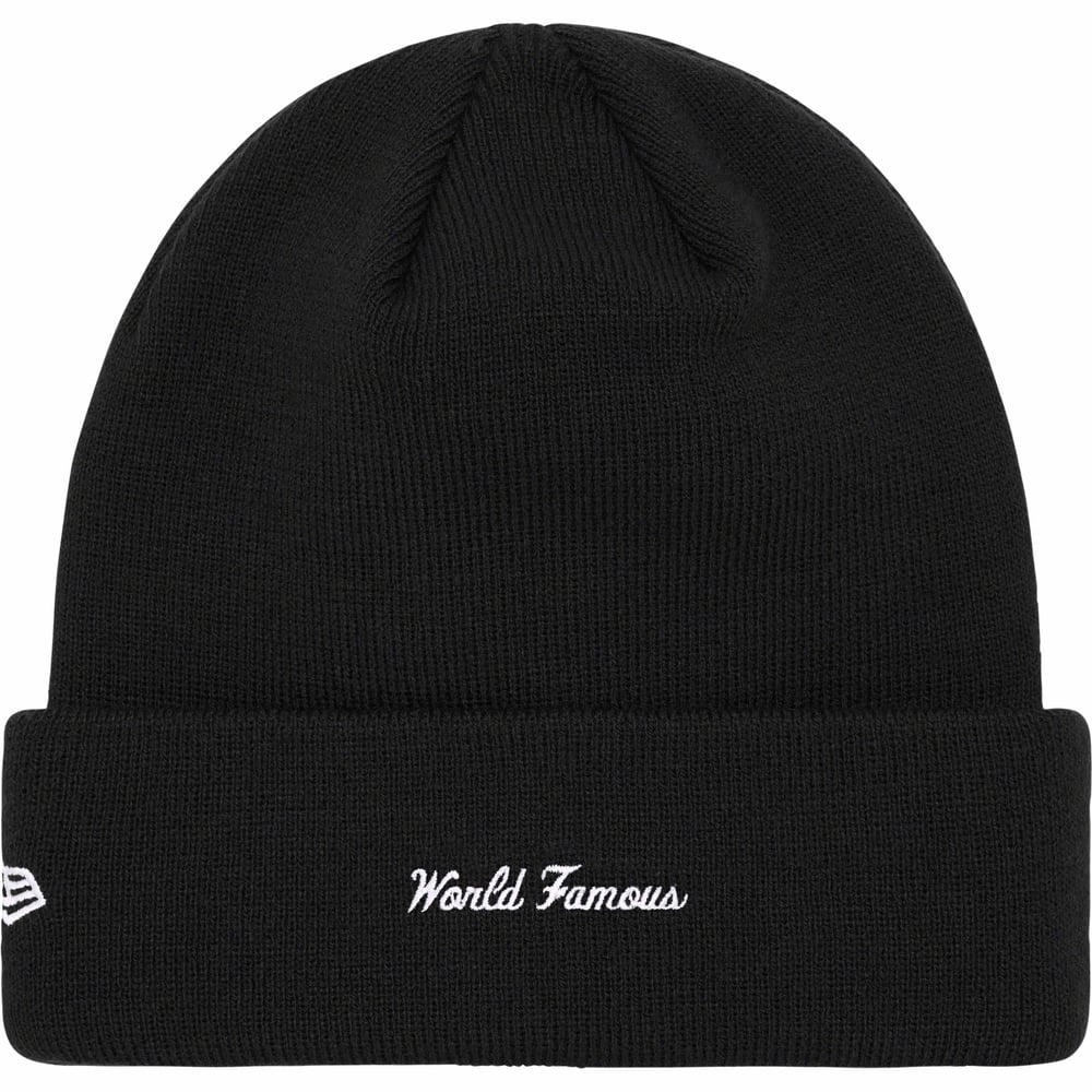 This beanie is a joint product between Supreme and New Era, emphasizing the collaboration aspect of the release.