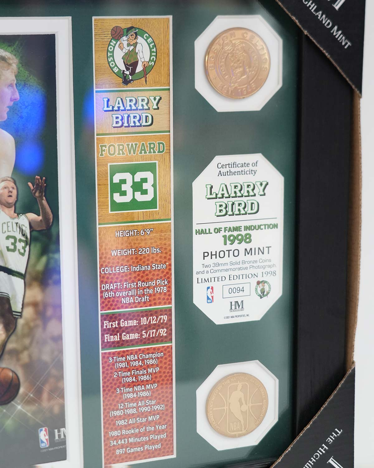 Highland Mint Larry Bird Boston Celtics Hall of Fame Banner Bronze Coin Photo Mint