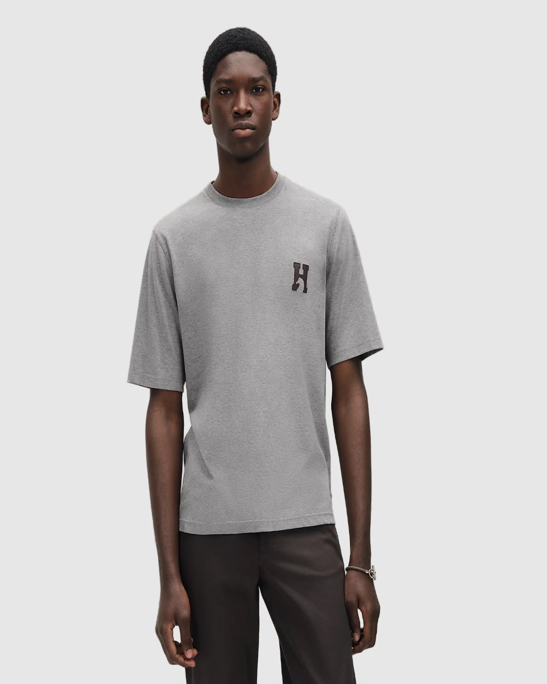 Hermes "H'Cheval" T-shirt with leather detail Gris