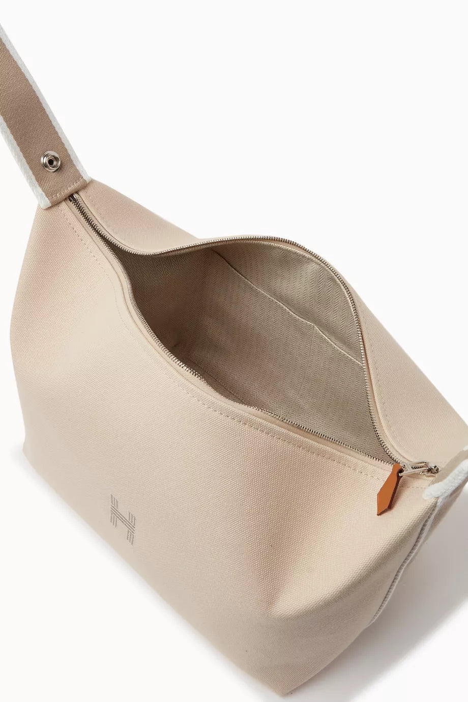 The beauty of this Hermès Bride-a-Brace case lies in its striking and versatile design. Created from canvas, it is added with a bi-colored handle that can be buttoned inward and the logo detailing on the front offers it a touch of exclusivity. The lined interior of the bag is secured by a zipper closure at the top