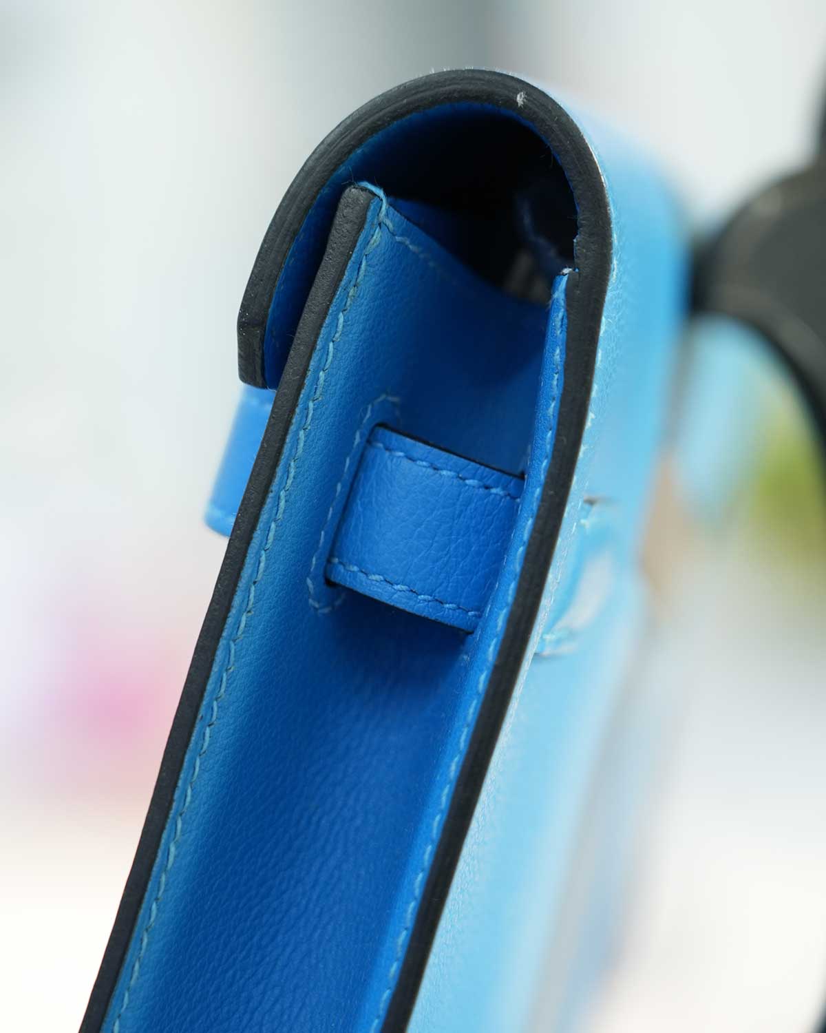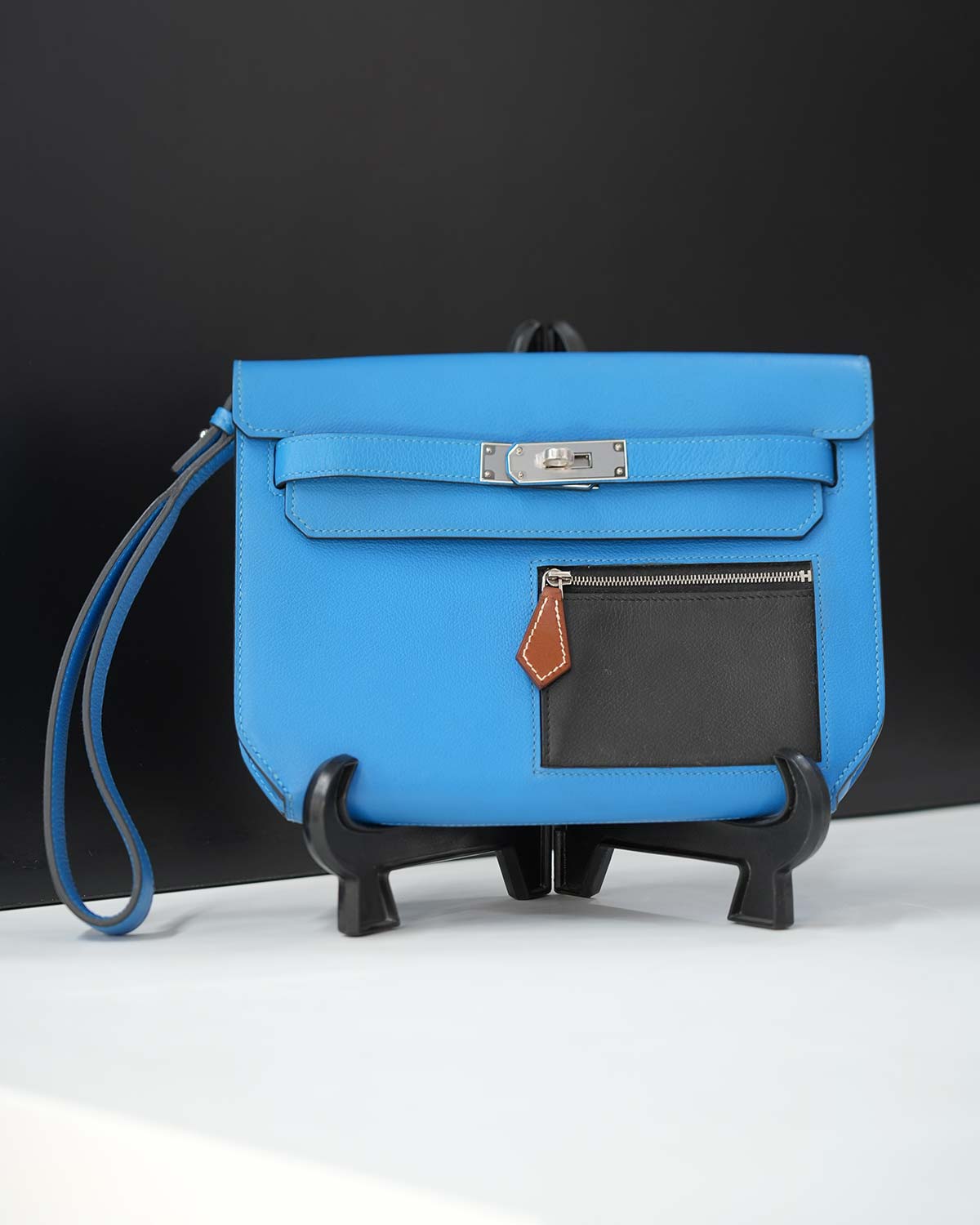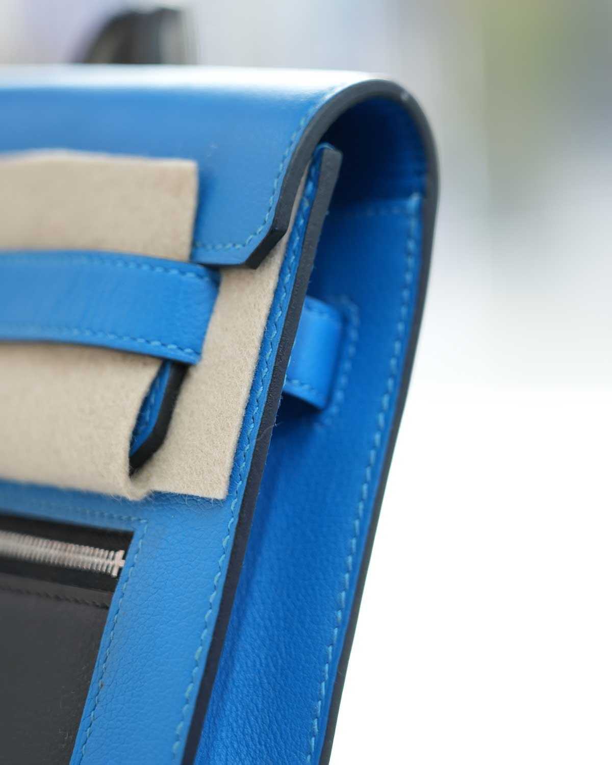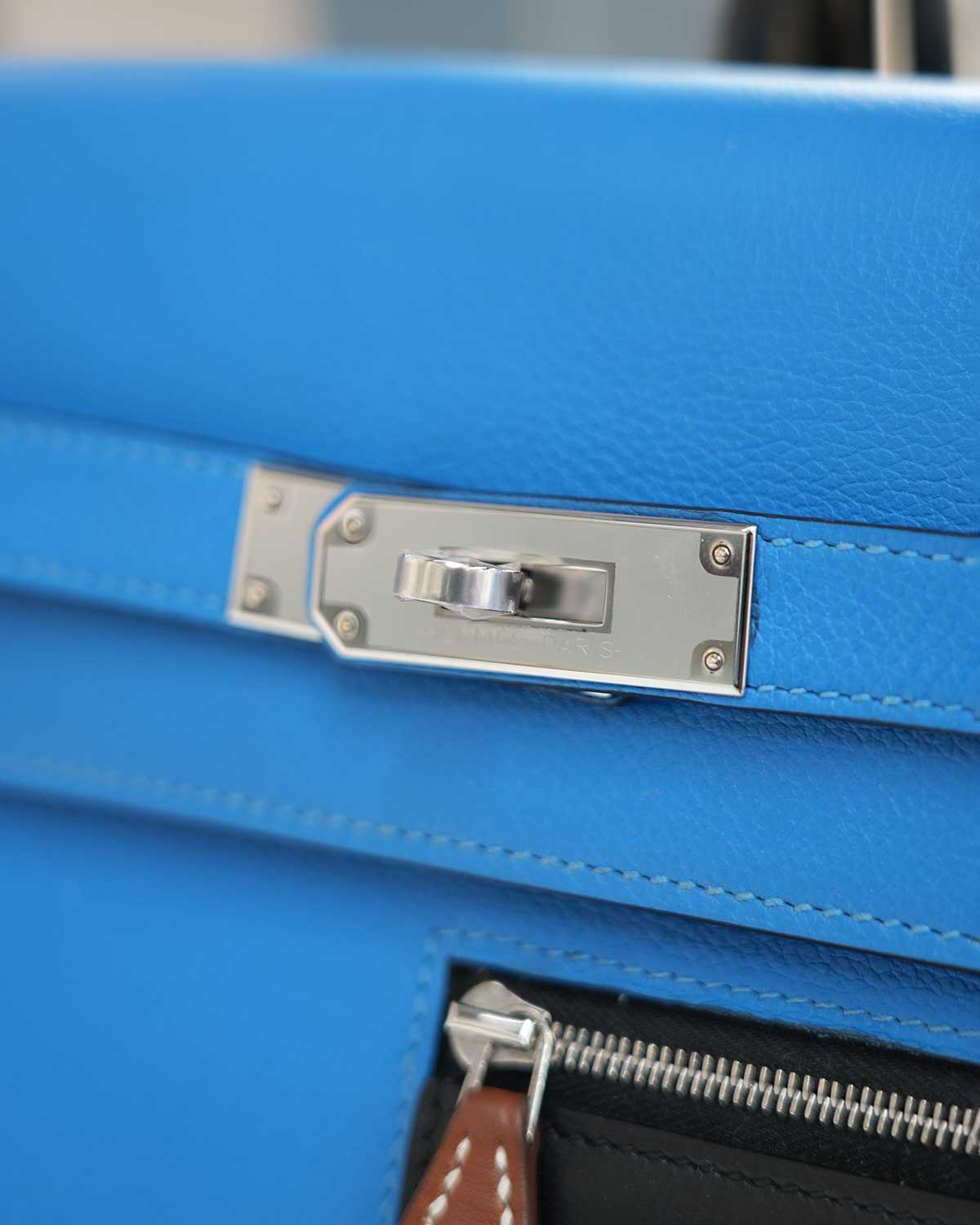 Hermès Kelly Depeches 25 Blue Hydra/Noir/Fauve Evercolour with Palladium Hardware