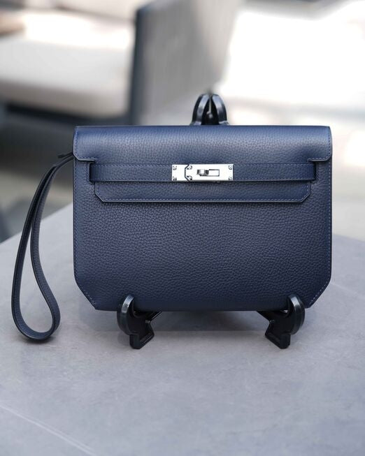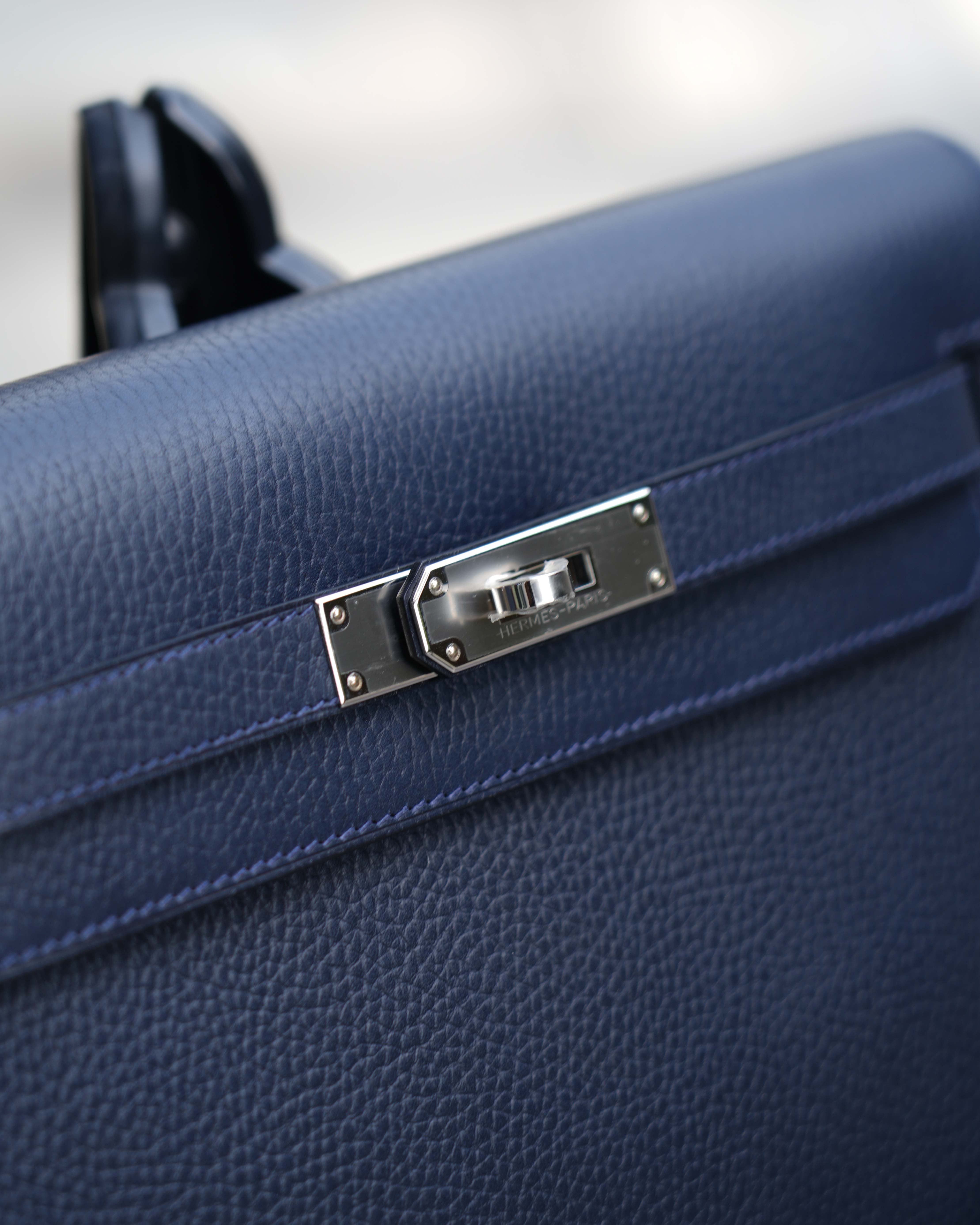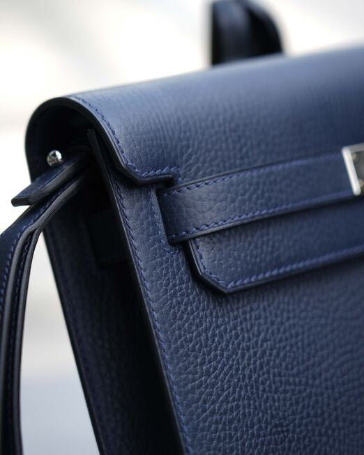 Hermes Kelly Depeches 25 Pouch Blue Nuit Cuir Galop (Vache)