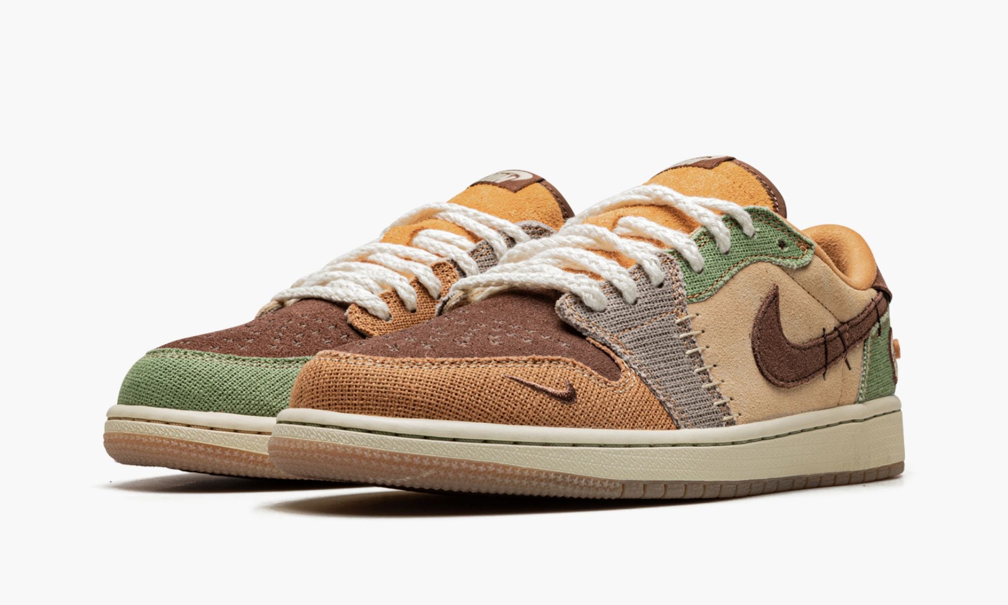 The Air Jordan 1 Low “Voodoo” is a special New Orleans-inspired colorway of the classic sneaker that was released alongside basketball star Zion Williamson’s Nike Zion 2 of the same nickname. The “Voodoo” theme is undoubtedly inspired by voodoo dolls, a fixture of New Orleans’ lore. A mismatched color block highlights the shoe’s singular appearance. Specifically, beige-colored suede is found on the mid-panel and brown suede appears on the perforated toe. Burlap-like overlays are designed in a mismatched color block of green and brown on the toe, forefoot, eyelets, and heel of the left and right shoe. Brown stitching complements the tonal Swoosh on both sides of the shoe. Inverted mini Swooshes appear on the forefoot. An upside down “Wings” logo on the heel completes the look. Release date: November 8, 2022