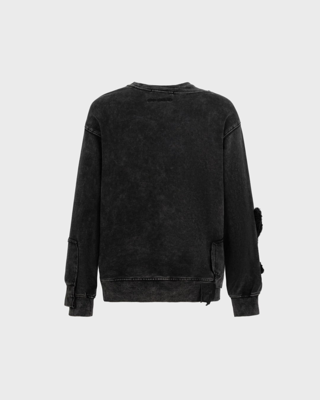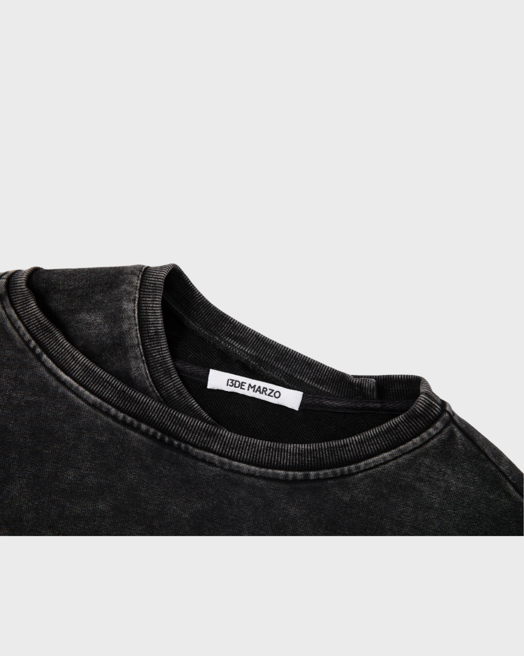 This sweater is part of 13DE MARZO’s unique lineup, known for its avant-garde and artistic approach to streetwear. The "Malposition" washed effect gives it a distinct, vintage-style distressed look.