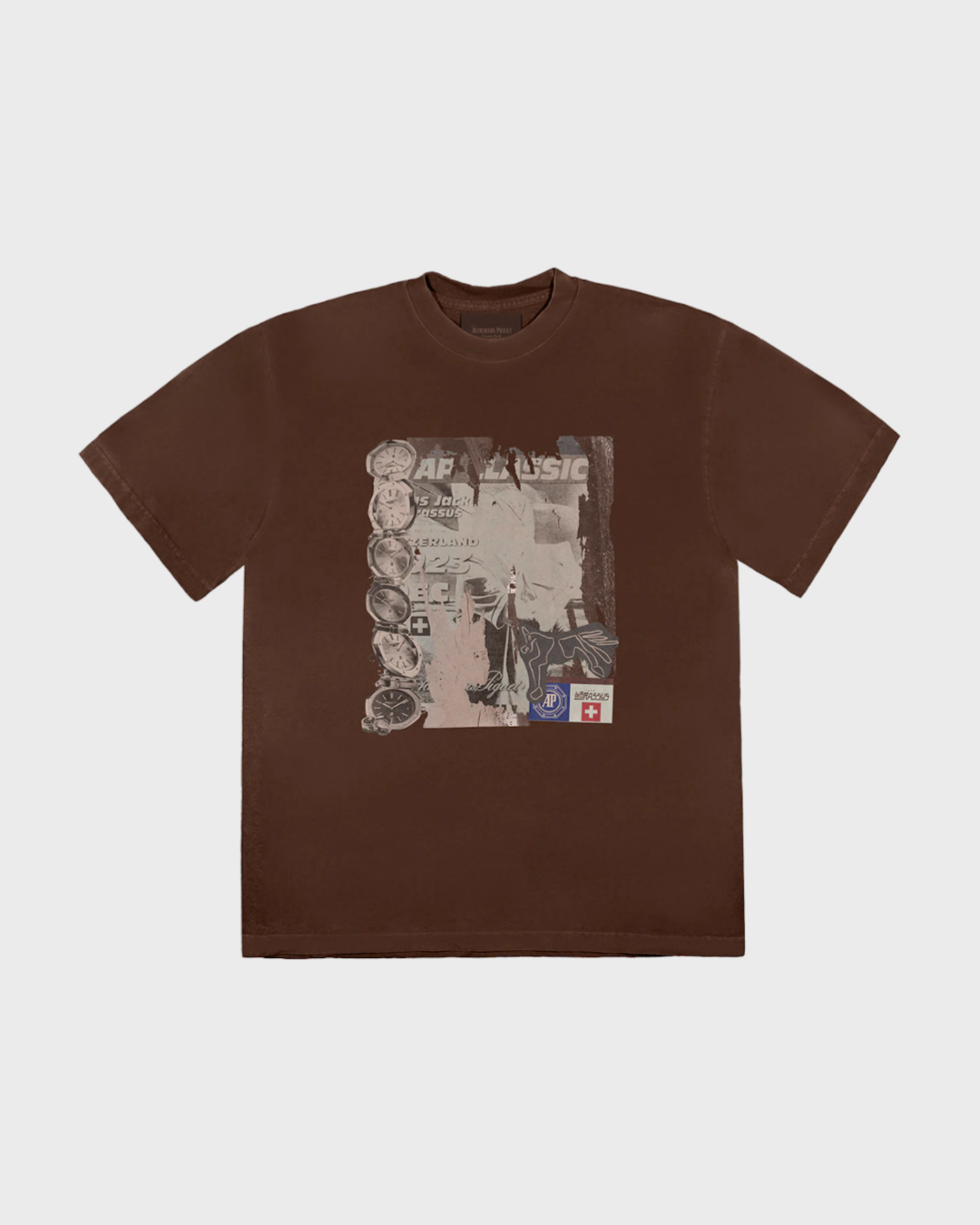 An exclusive blend of luxury and streetwear, the Audemars Piguet x Cactus Jack Classic Brown T-Shirt showcases style with subtle sophistication.