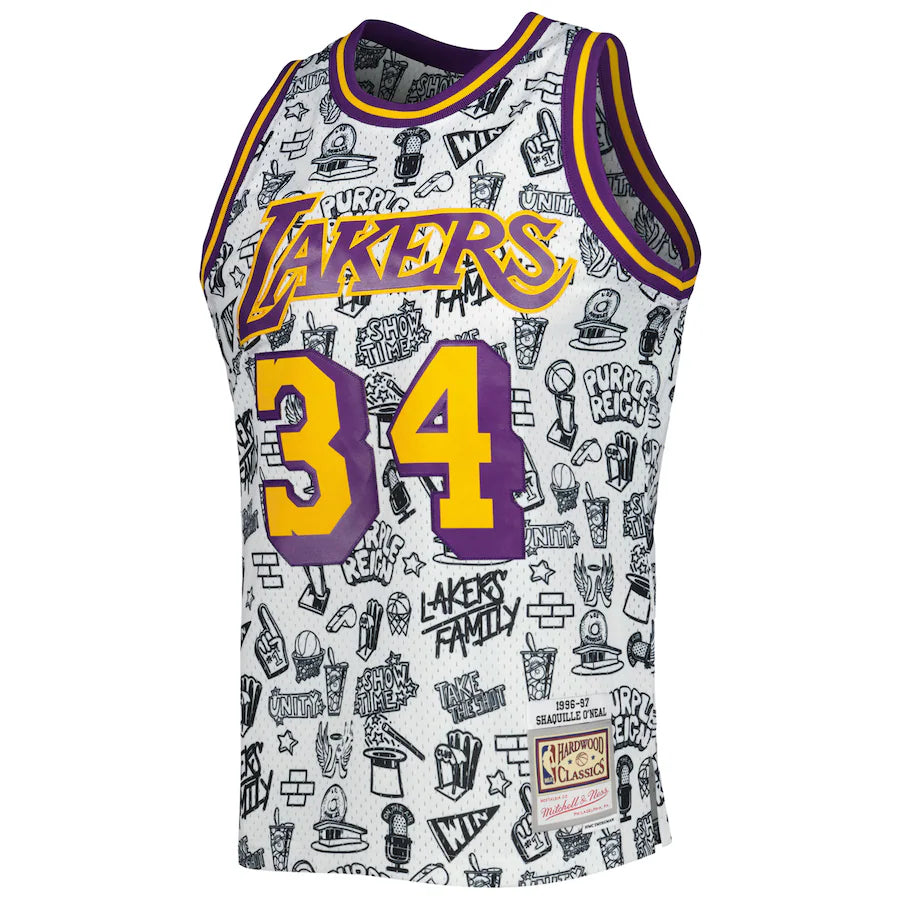 Los Angeles Lakers Shaquille O'Neal Mitchell & Ness White 1996/97 Hardwood Classics Doodle Swingman Jersey