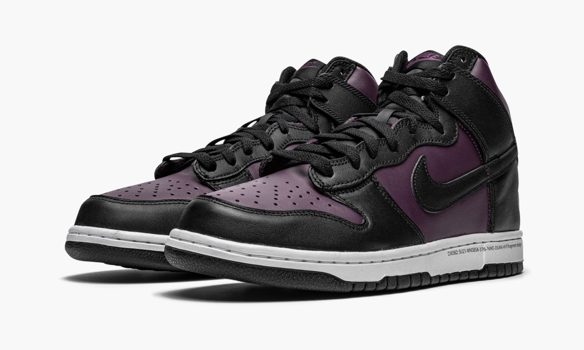 The Fragment x Nike Dunk High “City Pack - Beijing 2021” is a modern re-release of Hiroshi Fujiwara’s collaborative Dunk colorway that salutes some of the world’s most fashionable cities. Debuting in 2010, the Fragment-designed “City Pack” honored New York, London, and Beijing with unique mismatched colorways of the Dunk. Here, on the 2021 edition, Fragment and Nike do away with the “City Pack’s” original mismatched color block, opting for a more traditional Dunk look. Details include purple leather on the perforated toe and on the mid-panel and collar. Black leather overlays can be found on the forefoot, eyelets, collar, and Swoosh. Fragment’s lightning bolt motif appears on the lateral heel counter and industrial-style text is printed on the white midsole, a previously unseen detail on the original “Beijing” Dunk from 2010