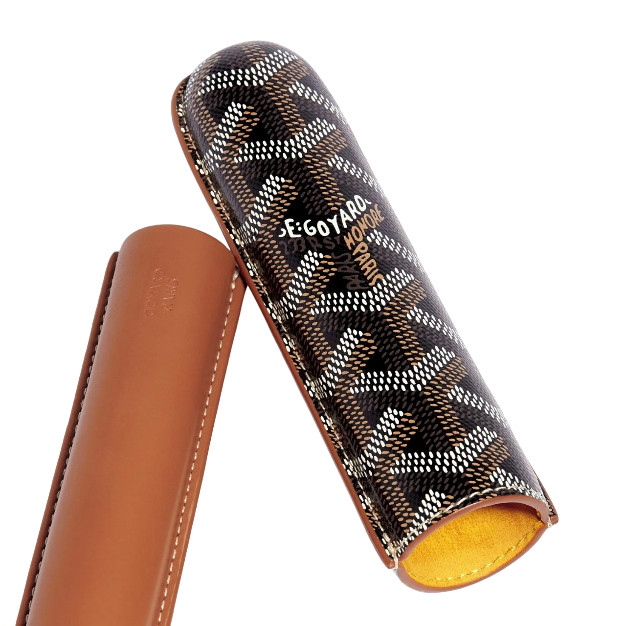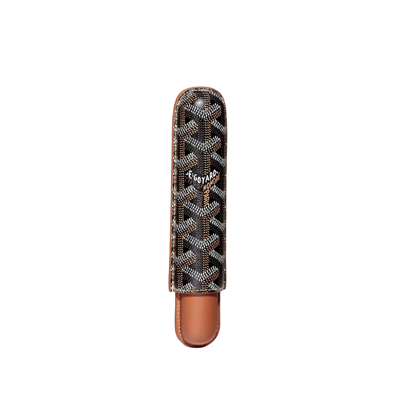 The Goyard Churchill Single Cigar Case is the epitome of luxury and craftsmanship. Wrapped in Goyard's iconic chevron canvas, this case is both stylish and functional, designed to keep your cigar protected and fresh. Perfect for the refined cigar aficionado, this elegant accessory ensures your Churchill cigar travels in unmatched style