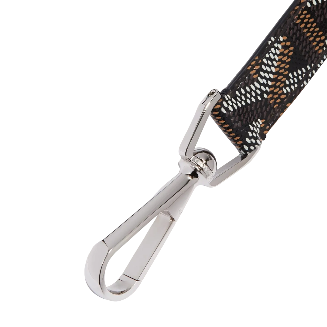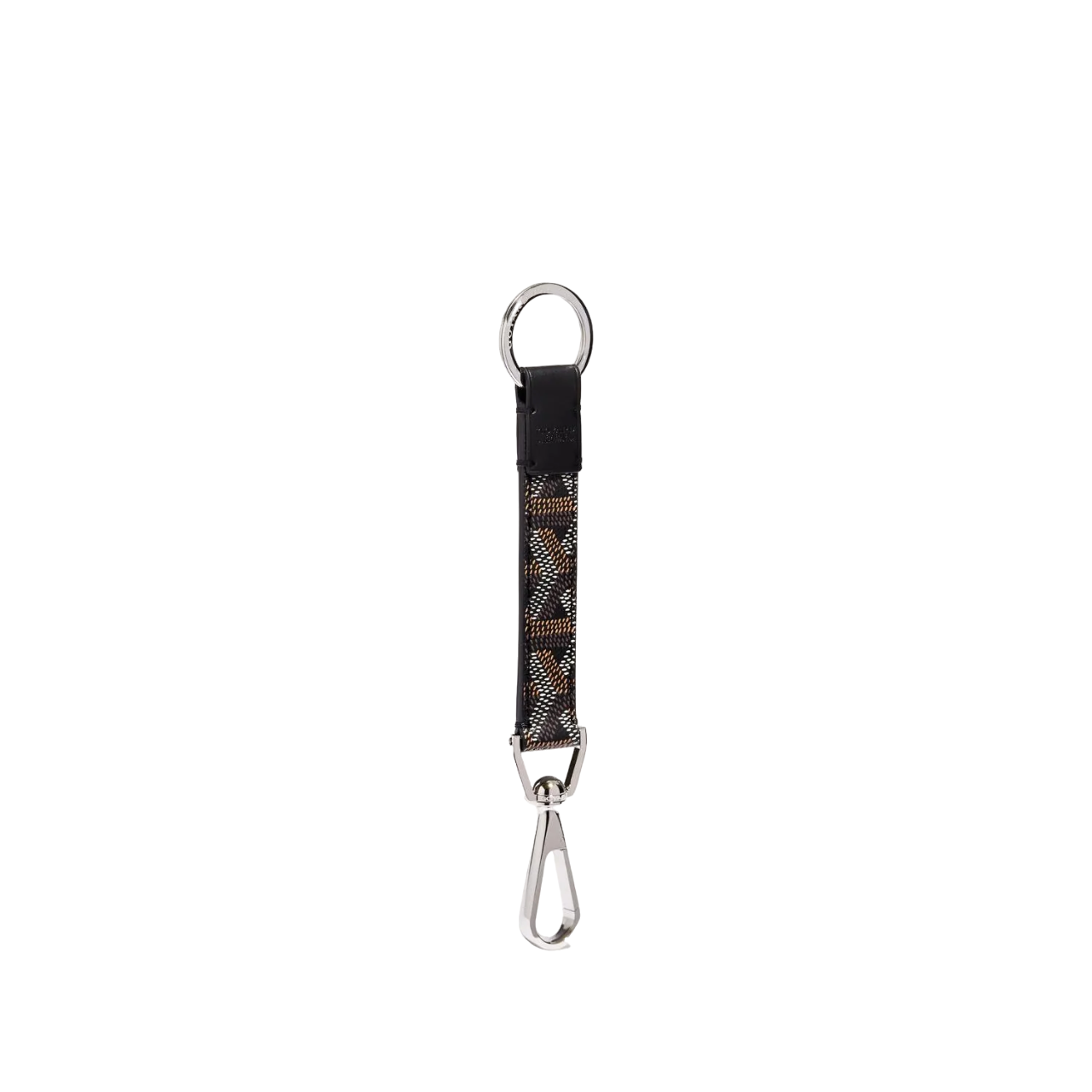 The Goyard Mousqueton Key Ring in Black & Tan is a blend of sophistication and practicality. Crafted with Goyard's signature chevron canvas, this key ring offers a touch of luxury to your everyday essentials. Perfectly sized to keep your keys secure while adding a stylish accent to your accessories collection