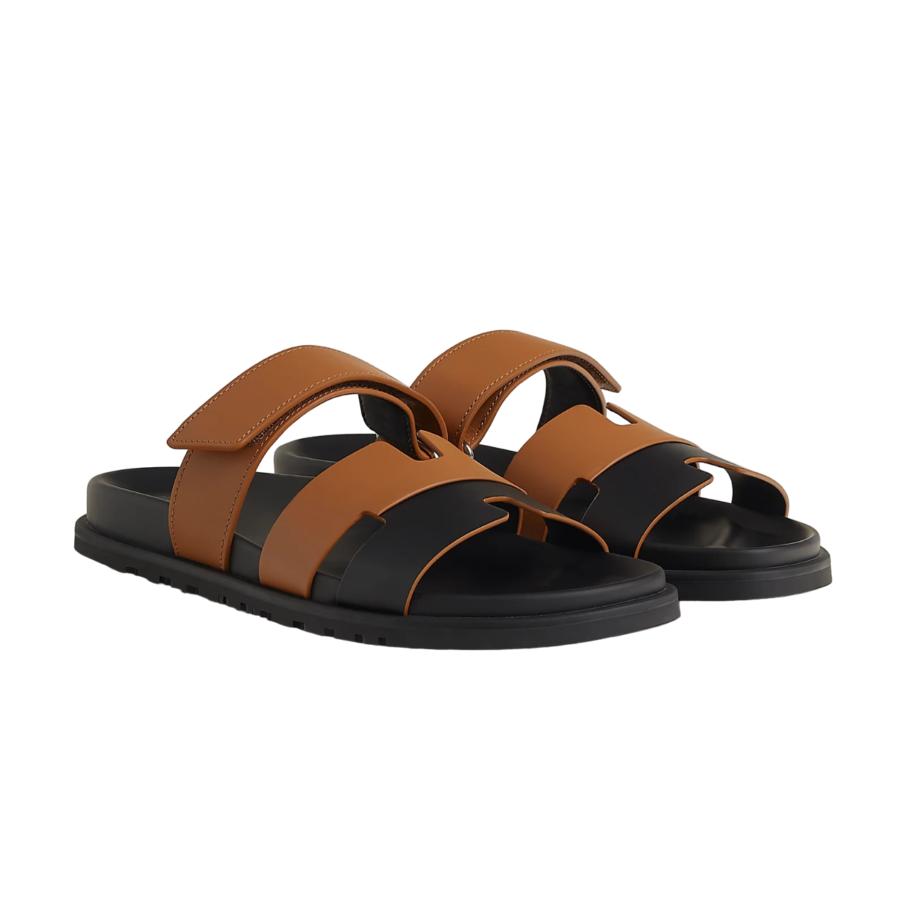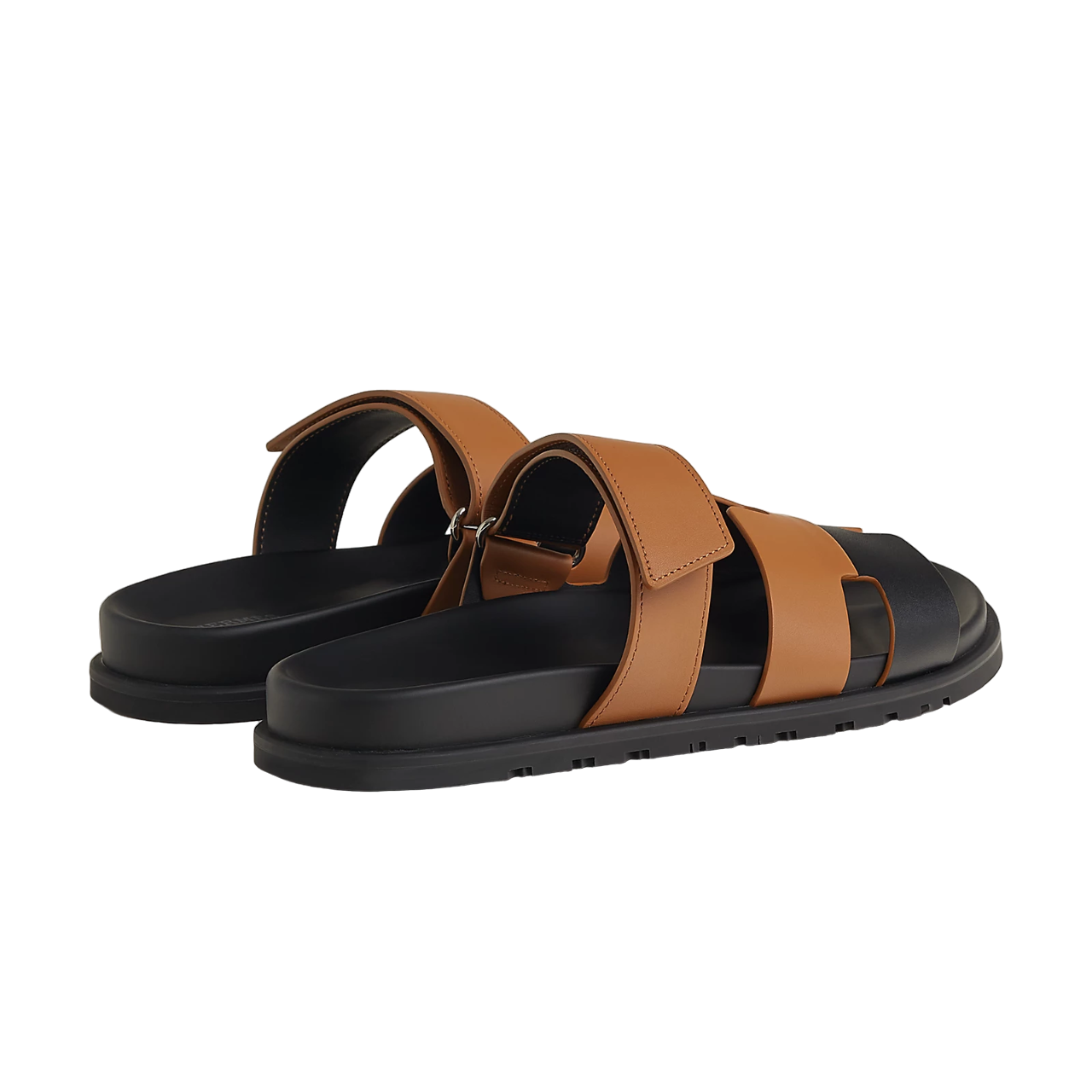Techno-sandal in calfskin with anatomical rubber sole and adjustable strap.