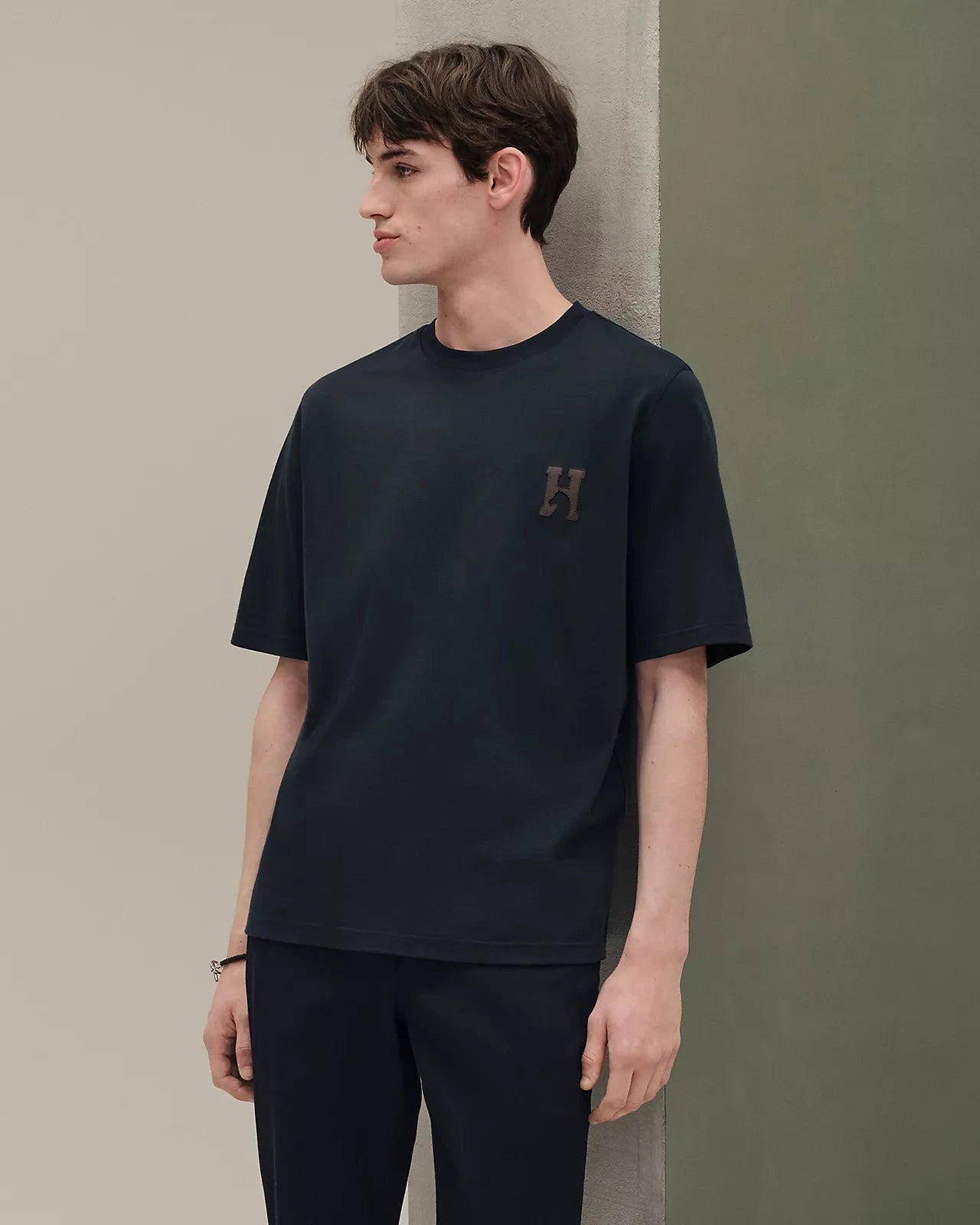 Short-sleeve crewneck t-shirt in cotton with "H'Cheval" detail (100% cotton)