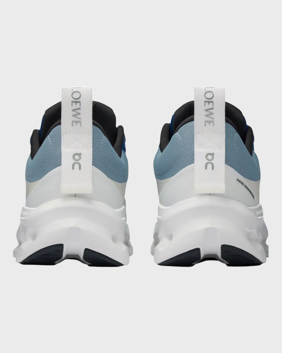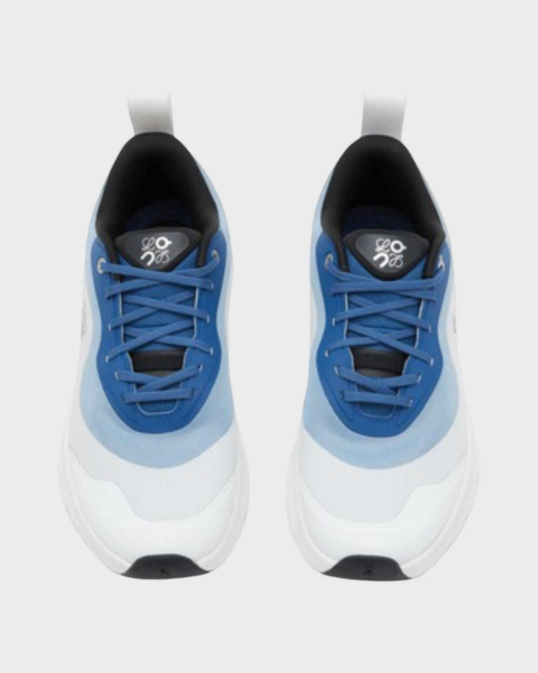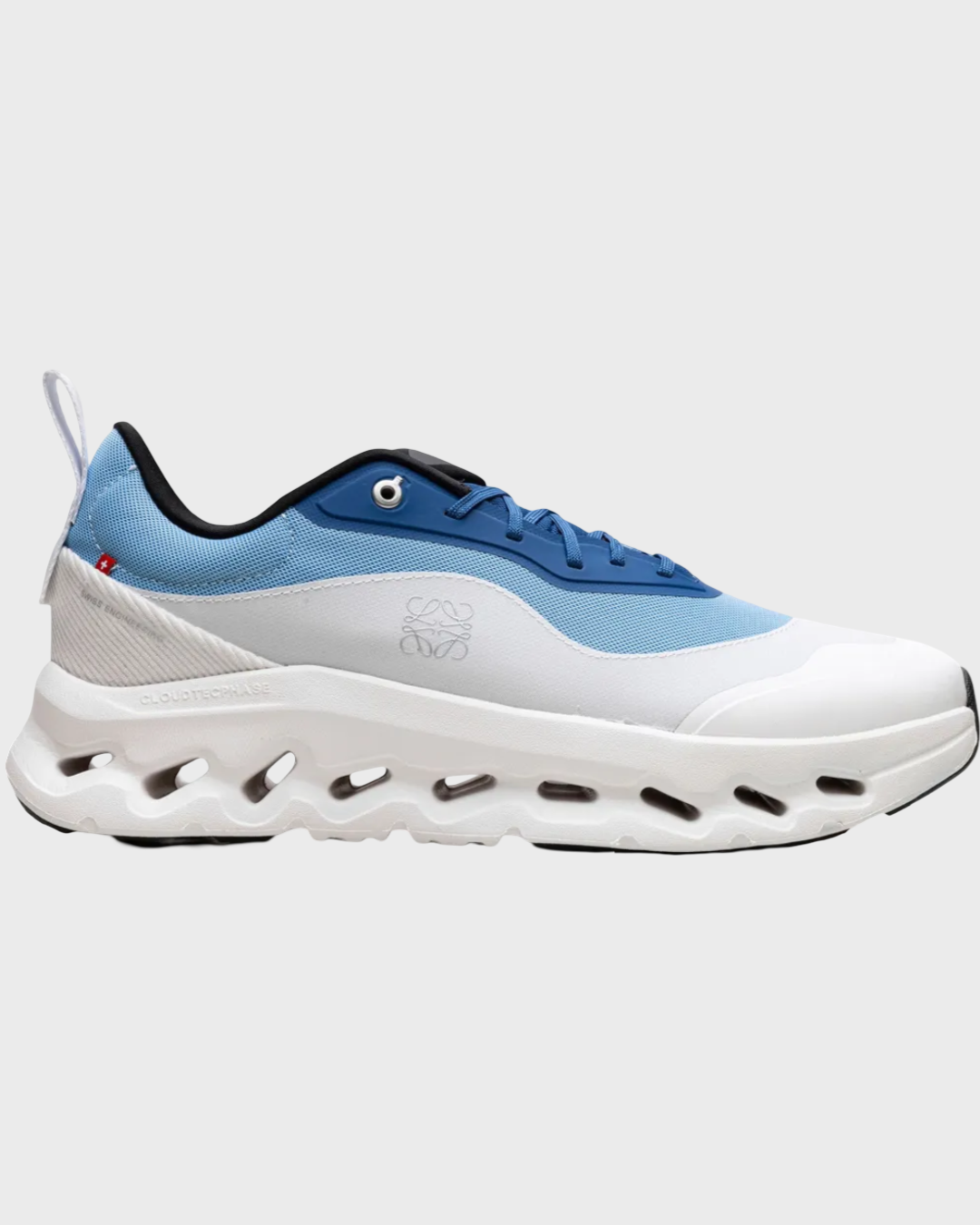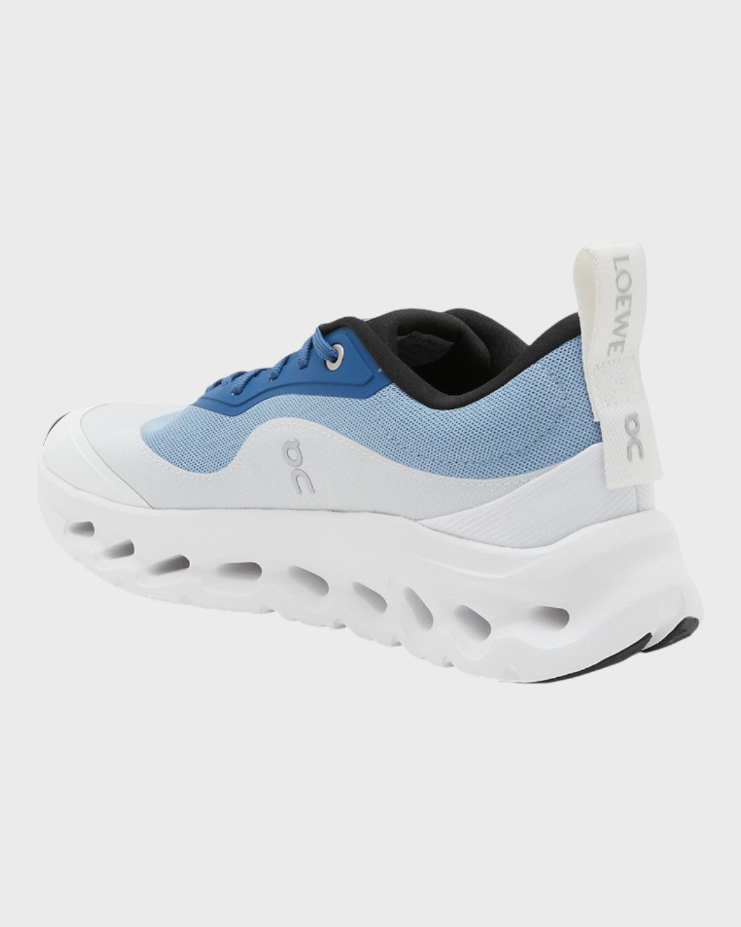 Design: Color-blocked blue and white palette with LOEWE × On branding on the tongue