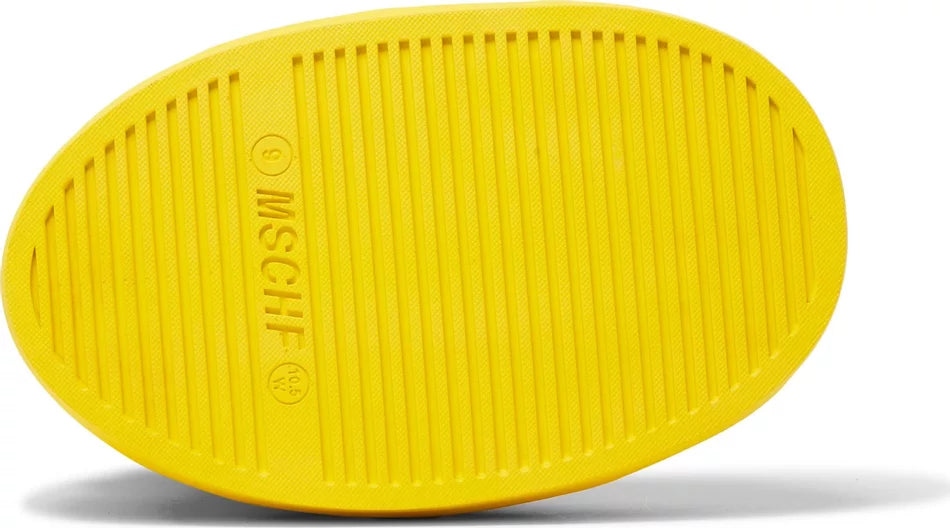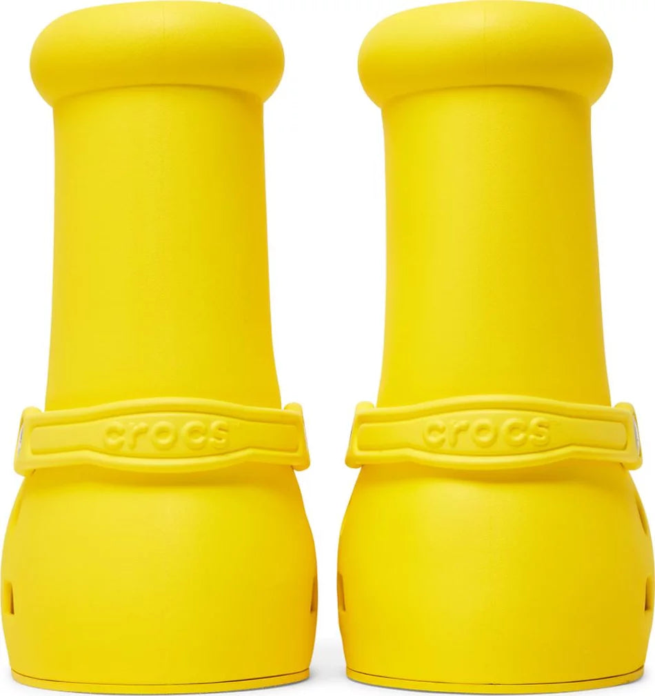 The Crocs x MSCHF Big Red Boot ‘Yellow’ represents the follow-up to the Brooklyn design studio’s virally popular Big Red Boot. Finished in a sunny hue, the cartoonish boot features a TPU rubber shell with design details borrowed from a Crocs clog. They include ventilation ports and a pivoting heel strap marked with an embossed Crocs logo. Like its predecessor, the boot is equipped with exaggerated padding around the collar and a cushioned EVA midsole.