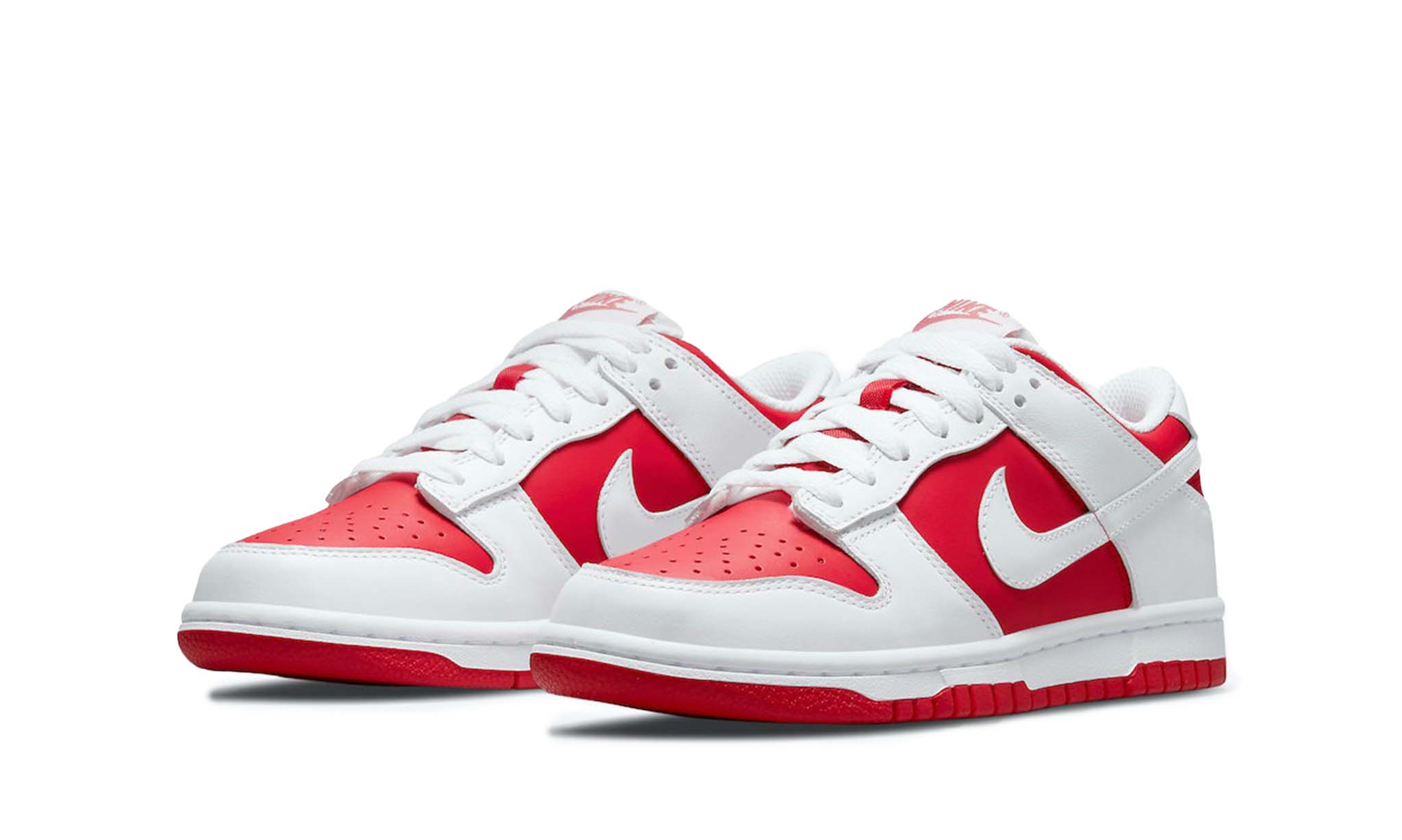 The Nike Dunk Low “University Red” reverses the color block of the vintage basketball shoe’s original “St. John’s” colorway that was part of the “Be True to Your School” collection from 1985. A September 2021 release, the modern “University Red” Dunk draws from the colorway of the same nickname that was part of the aforementioned college basketball-inspired line from the mid-80s. The perforated toe, mid-panel, collar, and heel display a bold University Red leather construction. White leather on the overlaid panels and Swoosh contrast the look. Red “Nike” detailing is embroidered onto the heel and a red “Nike” with a Swoosh logo appears on the white nylon tongue tag on the red nylon tongue. White laces cover the red tongue and a white midsole and University Red rubber outsole complete the look. Release date: September 16, 2021