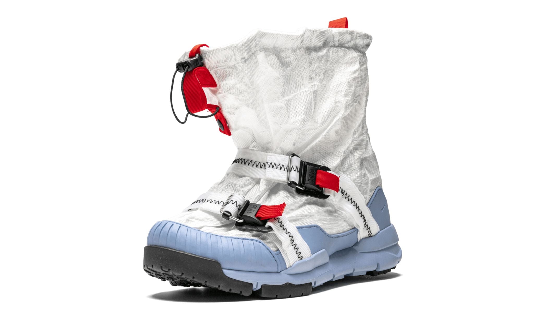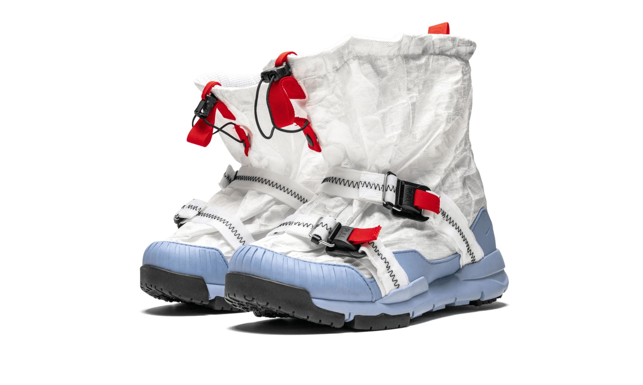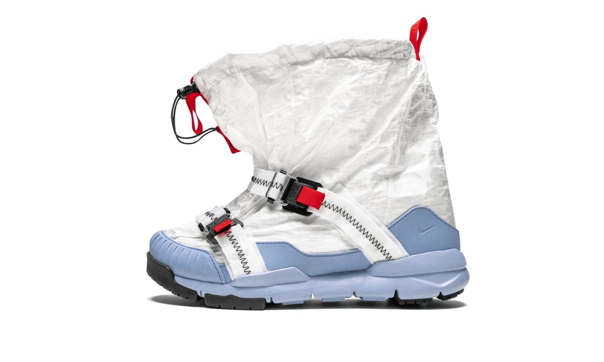 The Tom Sachs x Nike Mars Yard Overshoe is an incredibly unique design by renowned artist Tom Sachs. The protective design is inspired by wet March weather. The Mars Yard Overshoe features a waterproof nylon-reinforced Dyneema outer shell, rubber foxing and toe bumper, and a sticky rubber outsole. The chunky design also includes two nylon cross-straps with a Fidlock™ magnetic ladderlock buckle and Nifco 3mm cord toggle with a magnetic fastener. The result is another work of art by the world renowned creative. The Tom Sachs x Nike Mars Yard Overshoe released in extremely limited quantities in October 2018 at Dover Street Market in London.