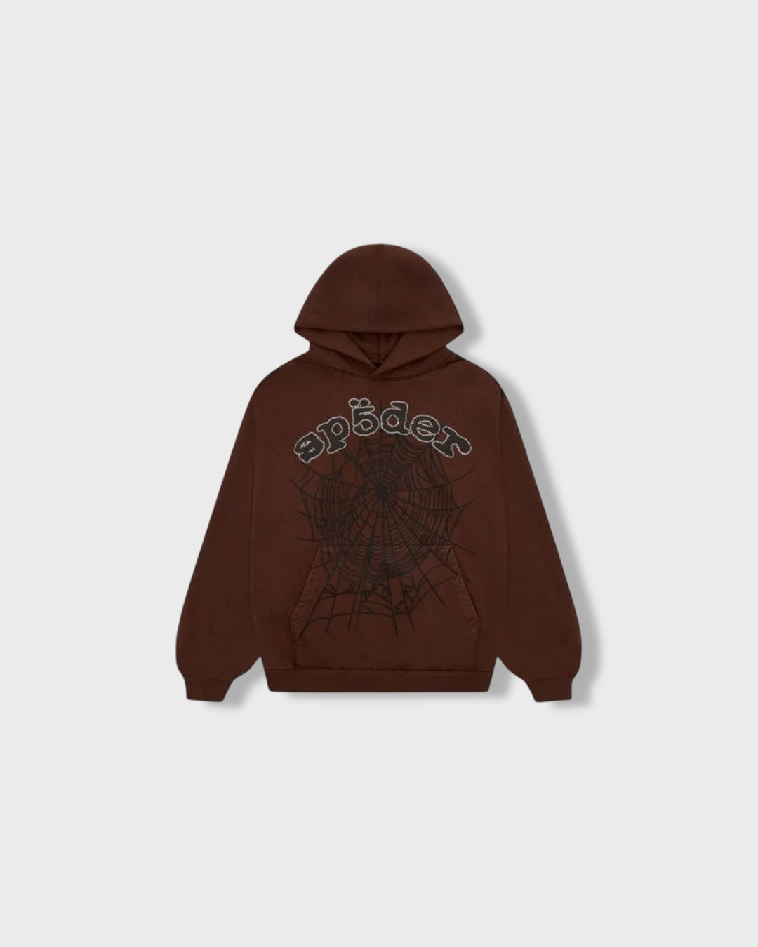 Sp5der x Travis Scott Rhinestone Web Hoodie Brown.