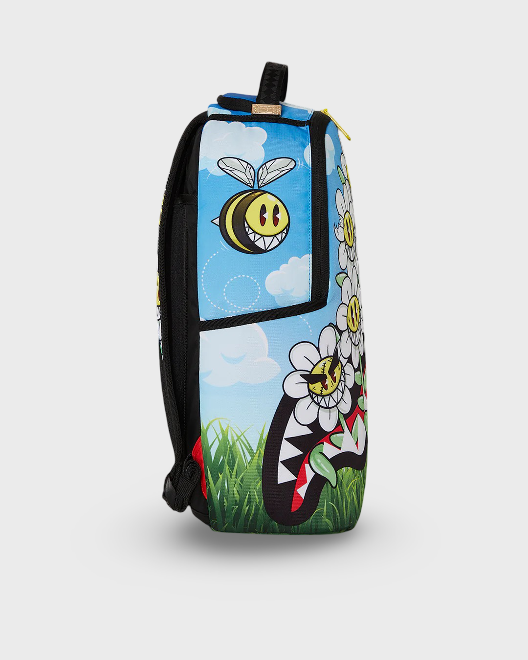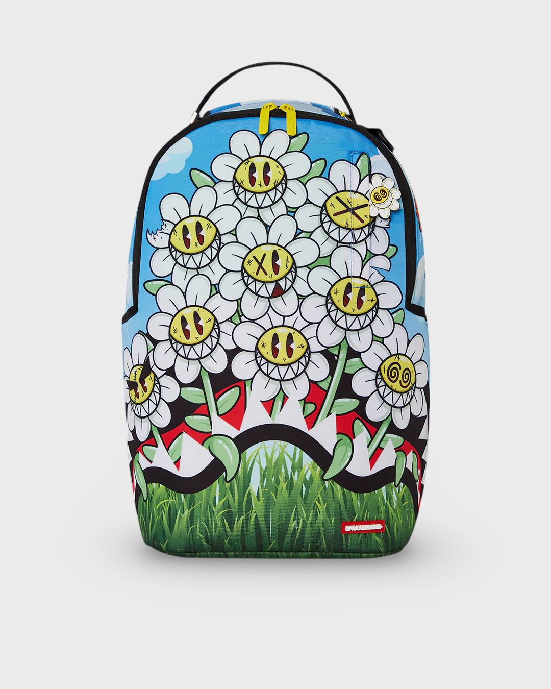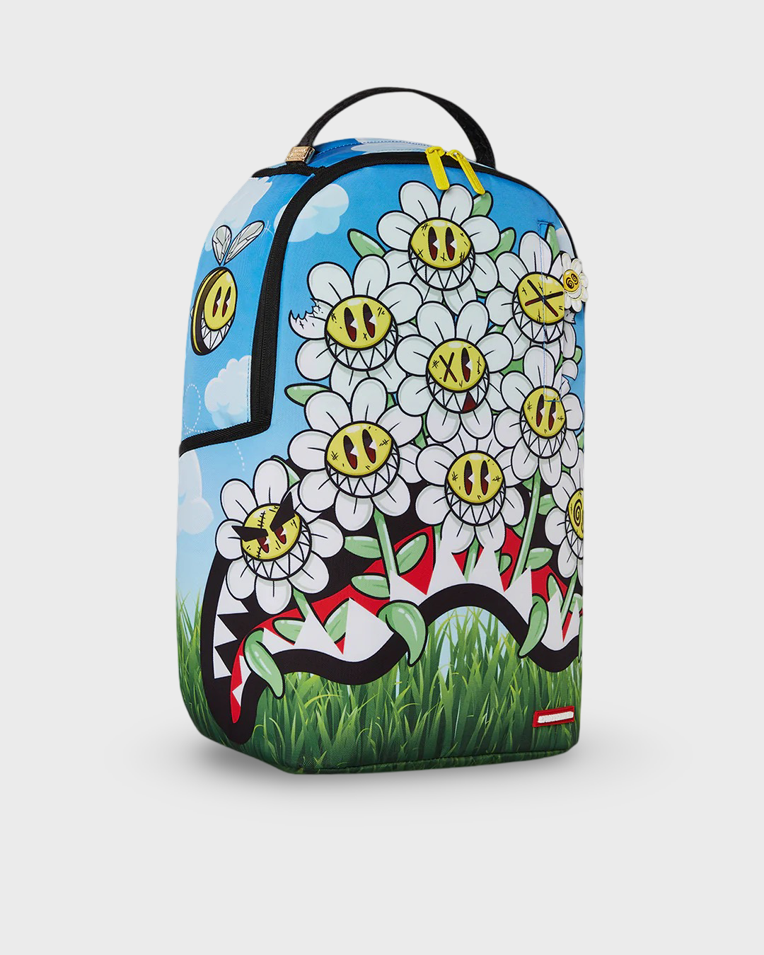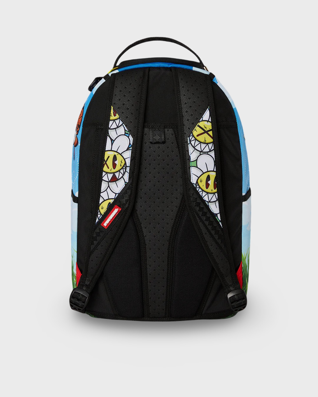 Dimensions: 18" x 6" x 11.5" • Front zipper pocket • Side pockets • Zippered Stash pocket • Separate velour sunglass compartment • Ergonomic mesh back padding • Adjustable Straps for custom sizing • Gold zippers with metal hardware • Metal "Sprayground Authentic" badge • Slide through back sleeve connects to carry-on luggage to free your hands