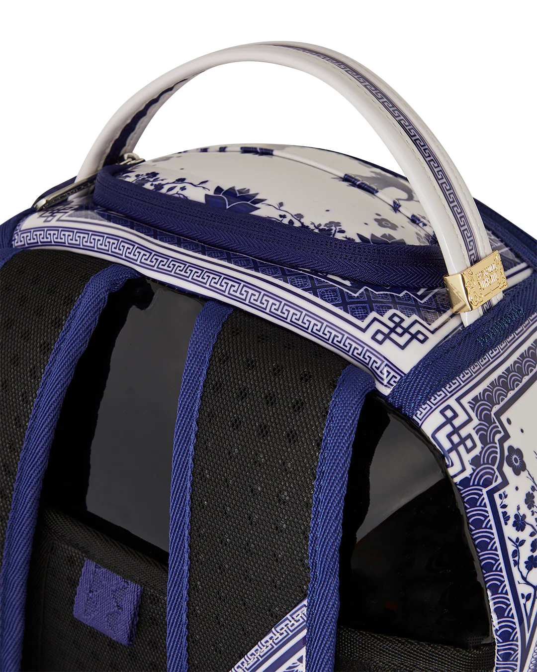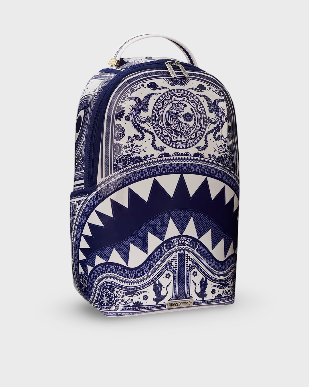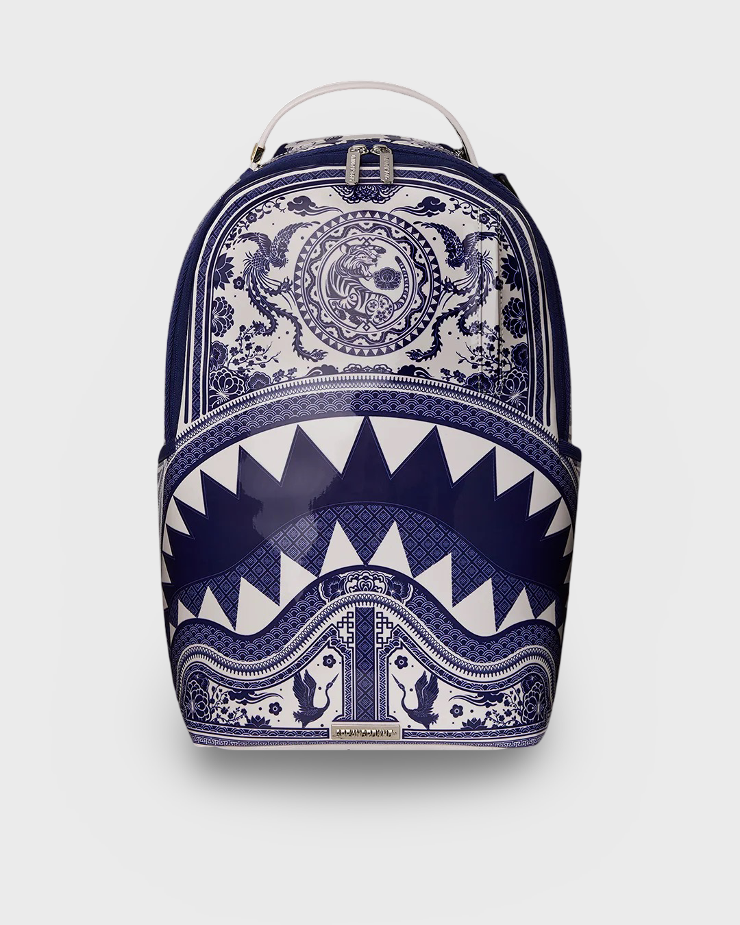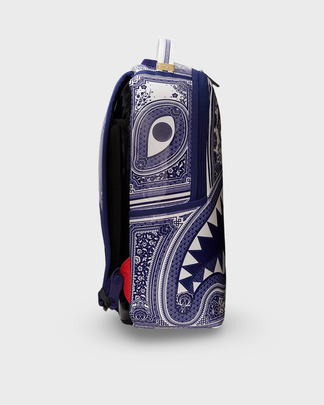 Dimensions: 18" x 6" x 11.5" • Front zipper pocket • Side pockets • Zippered Stash pocket • Separate velour sunglass compartment • Ergonomic mesh back padding • Adjustable Straps for custom sizing • Gold zippers with metal hardware • Metal "Sprayground Authentic" badge • Slide through back sleeve connects to carry-on luggage to free your hands