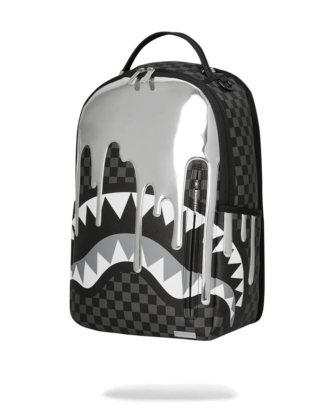 Sprayground Metallic Drip Sharks In Paris Backpack is a standout accessory that combines bold aesthetics with practical functionality. Here are the key features to highlight:
