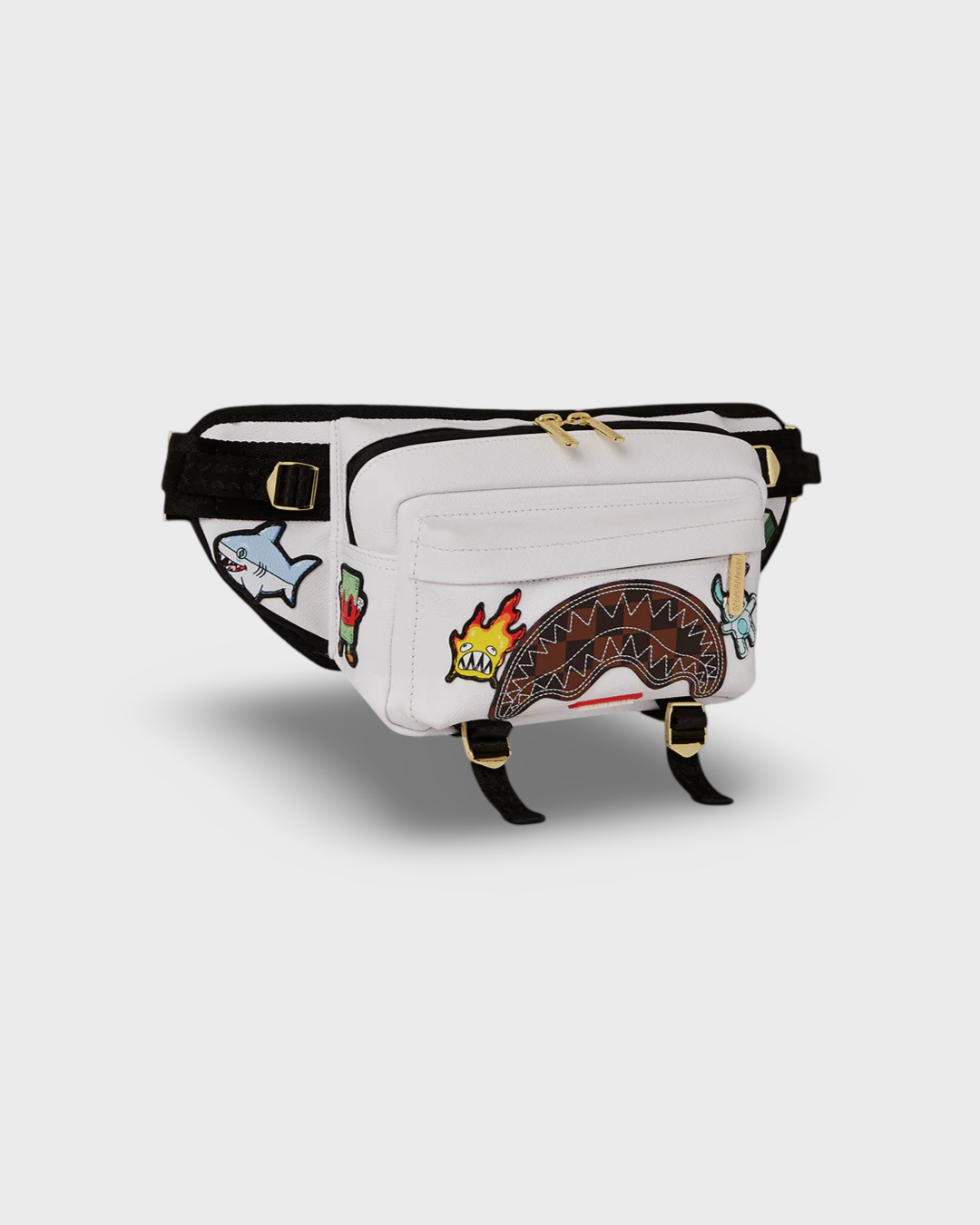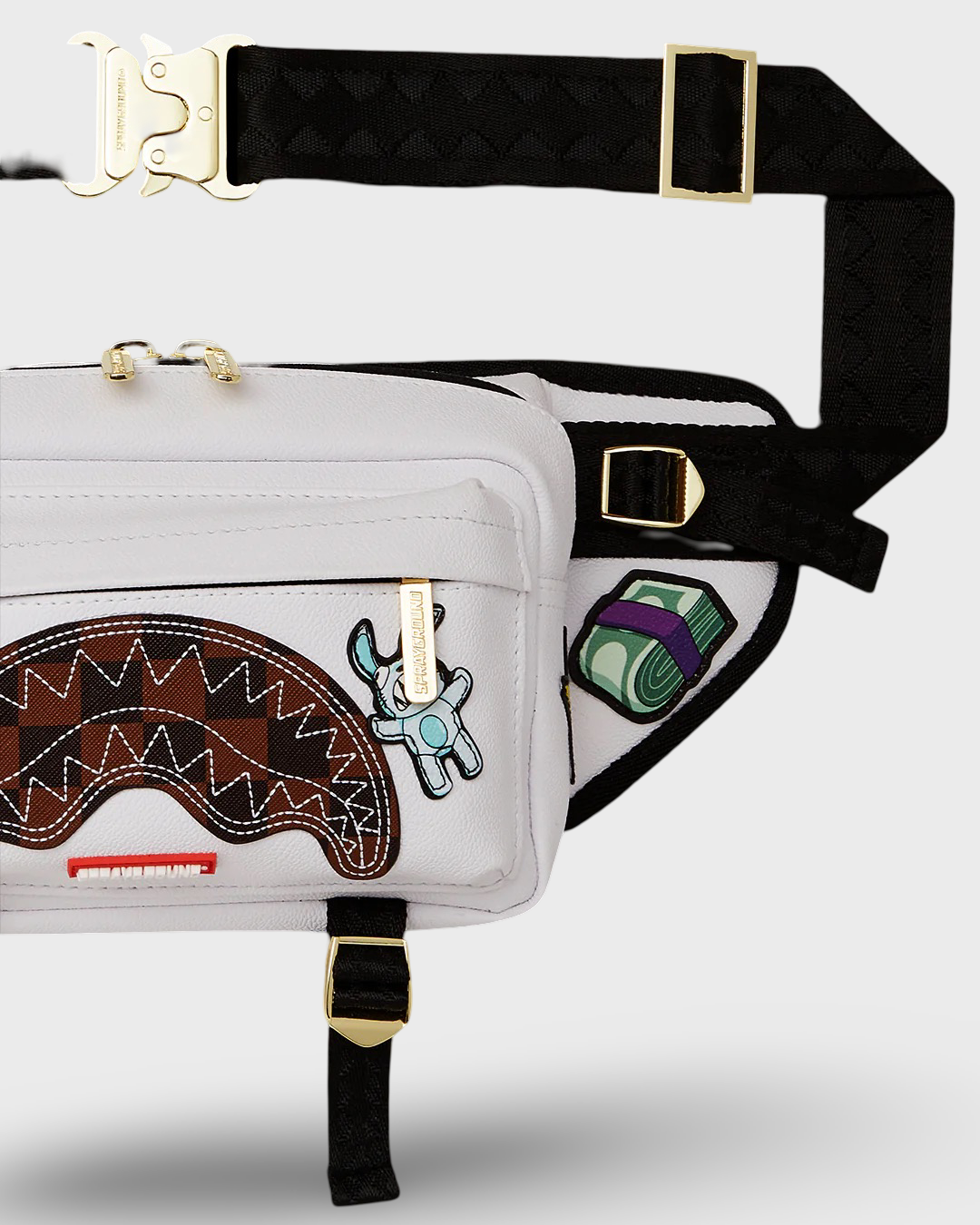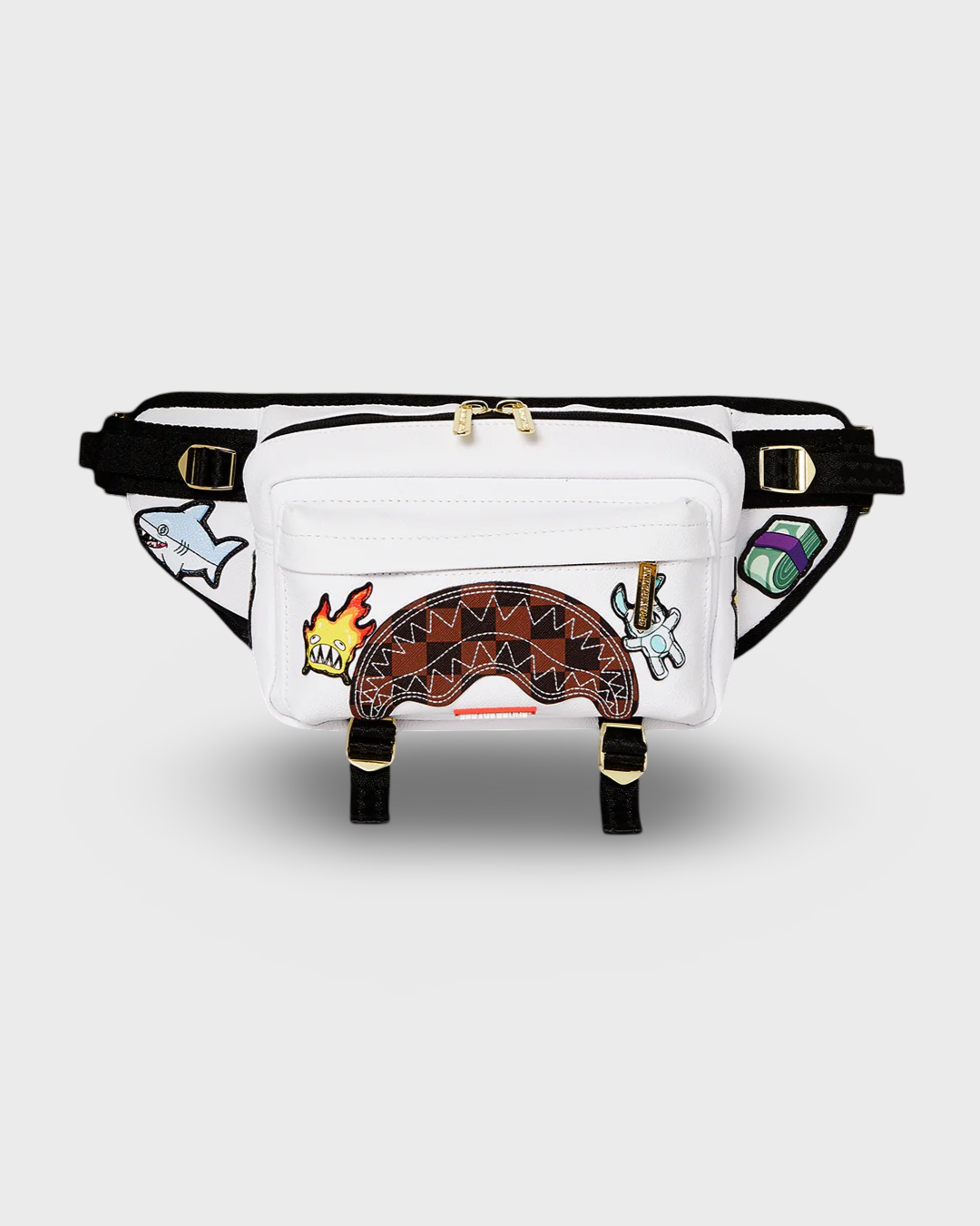 The Sprayground 3AM Savvy Crossbody is a stylish and functional waist bag designed for carrying essentials like your phone, wallet, sunglasses, and keys. It features: