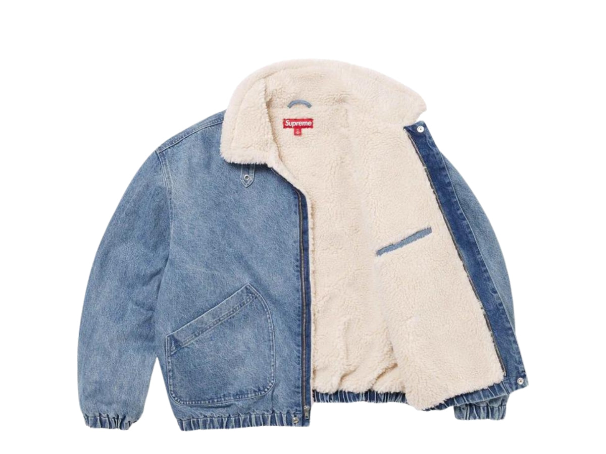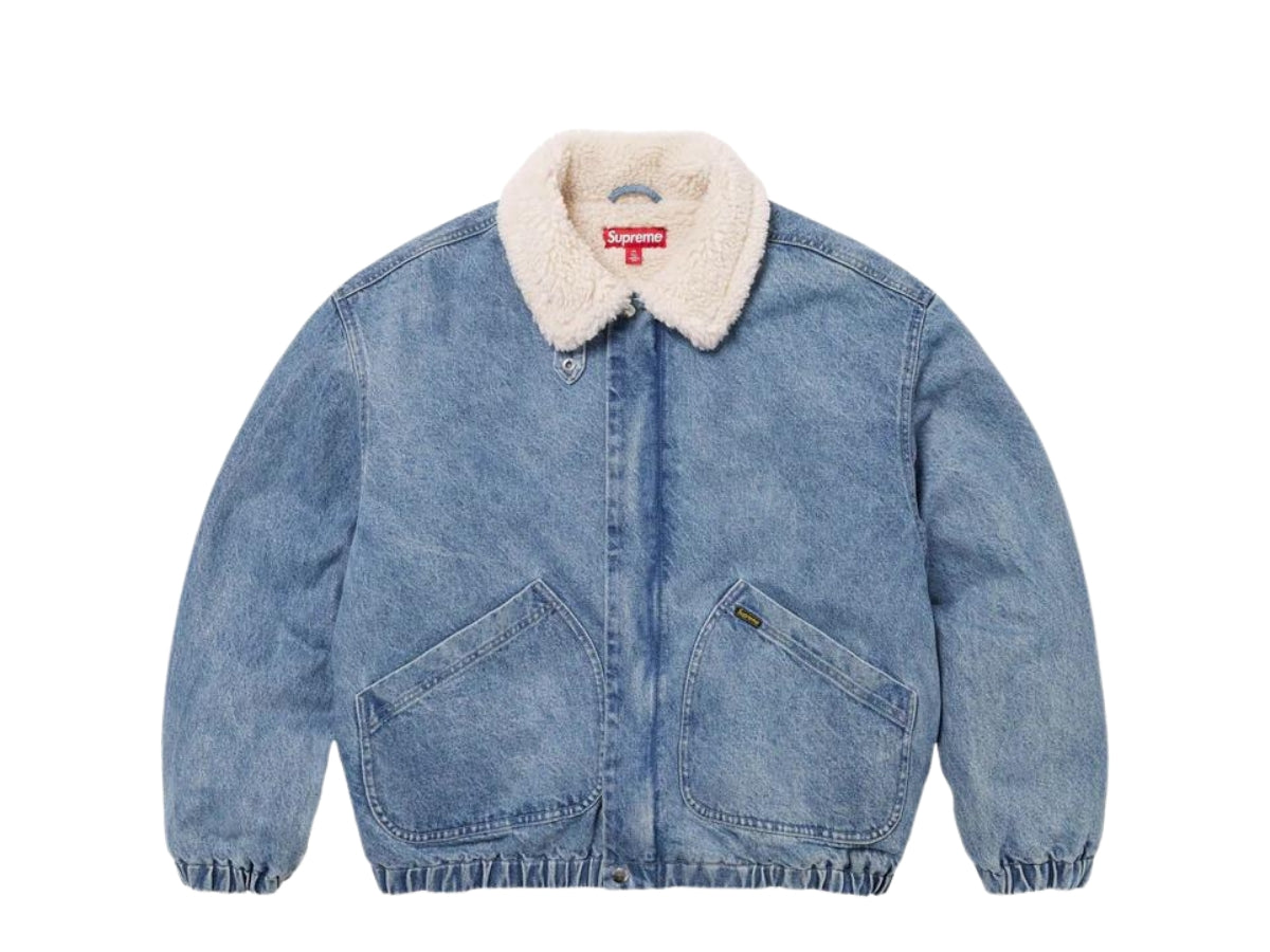 Supreme Faux Shearling Lined Bomber Jacket Denim