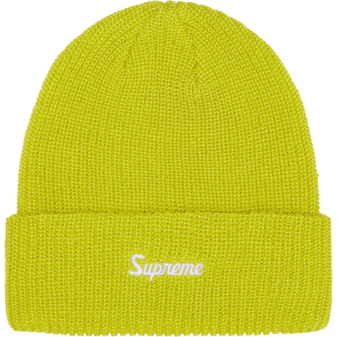 Acrylic cuffed loose gauge beanie with embroidered logo on cuff.