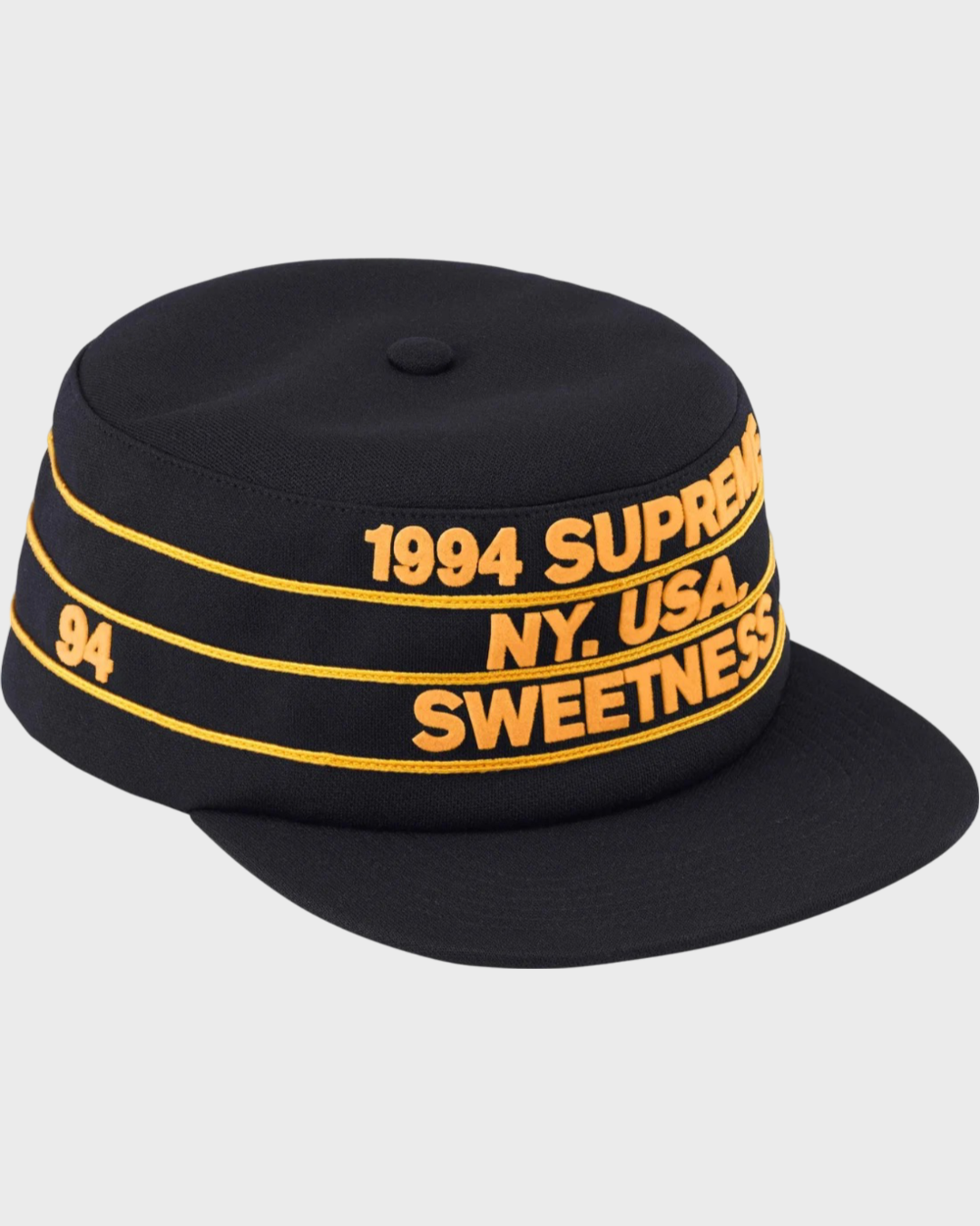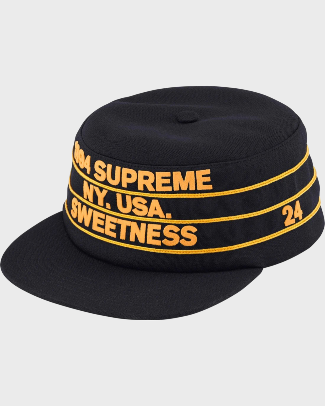 The Supreme Pro Bowl Pillbox Hat in Black was released on April 4, 2024, as part of Supreme's Spring/Summer 2024 (SS24) collection. It features a poly pillbox design with a snap closure and a flocking printed graphic on the front and sides.
