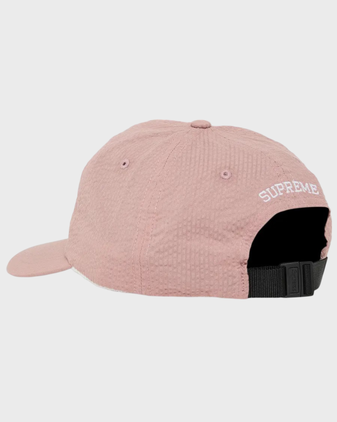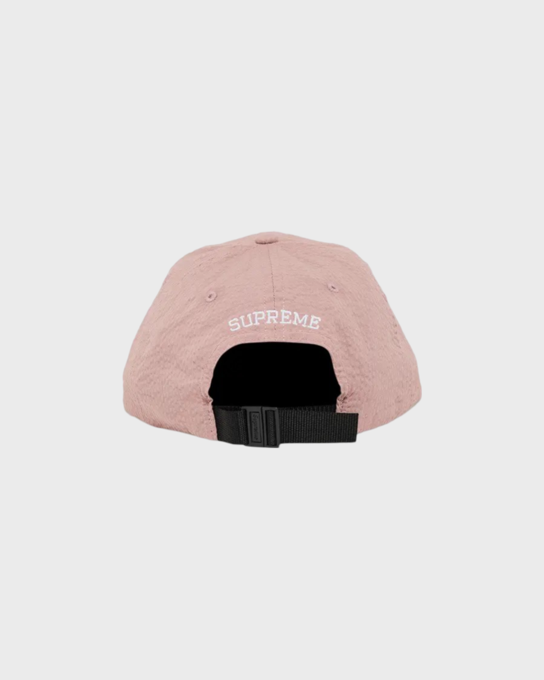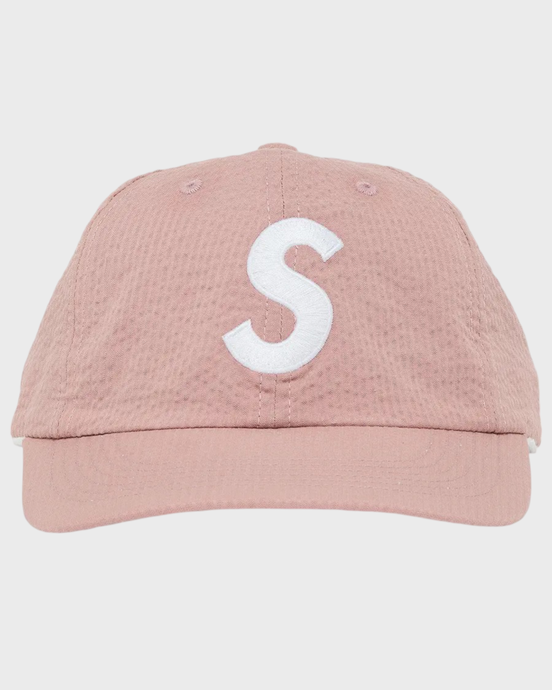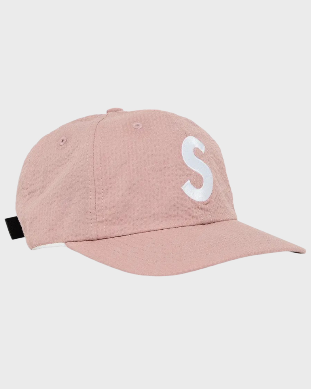 The Supreme Seersucker S Logo 6-Panel Hat from the SS24 collection,This hat features a seersucker fabric design with Supreme’s signature "S" logo on the front.