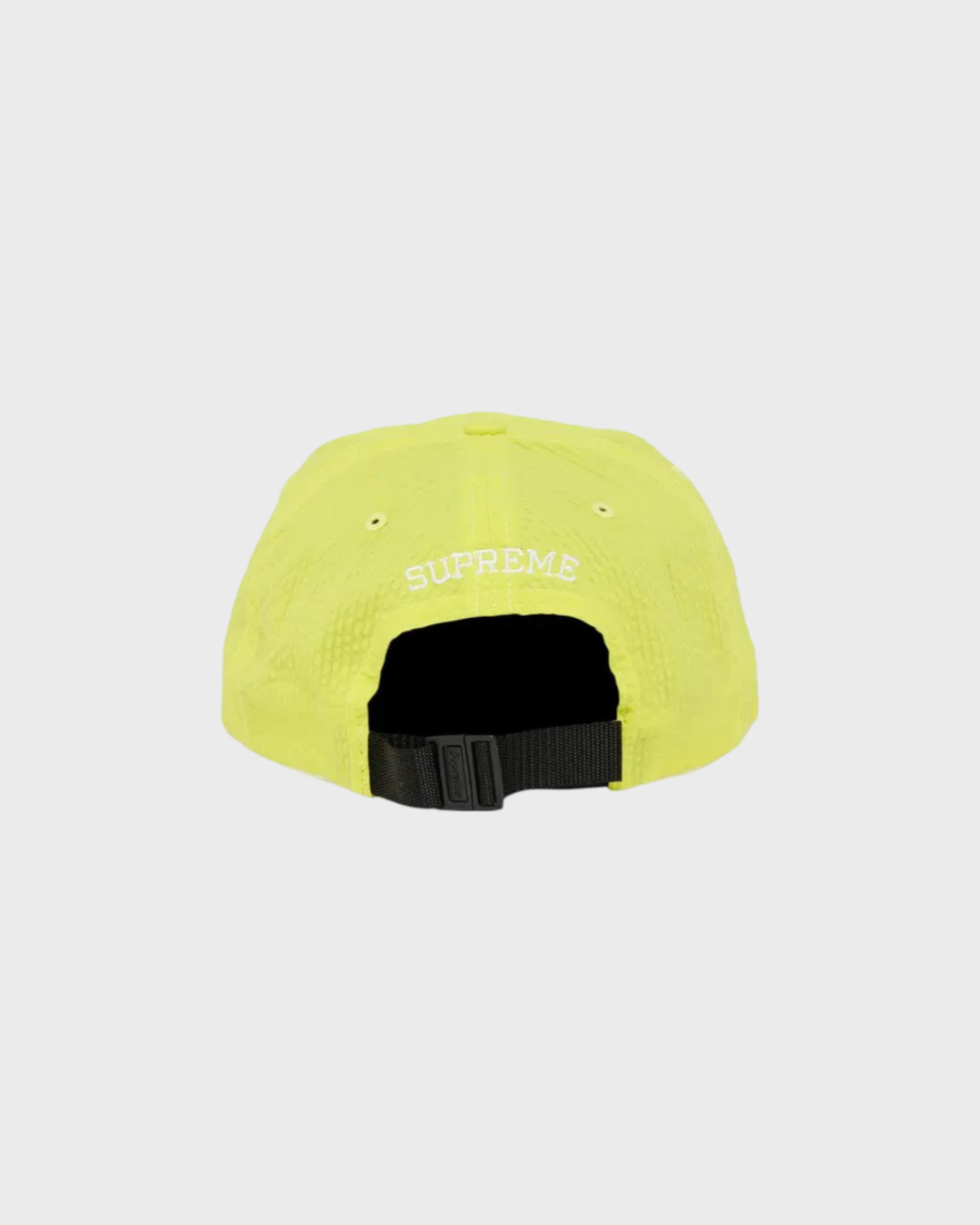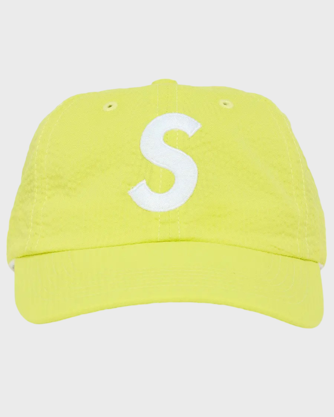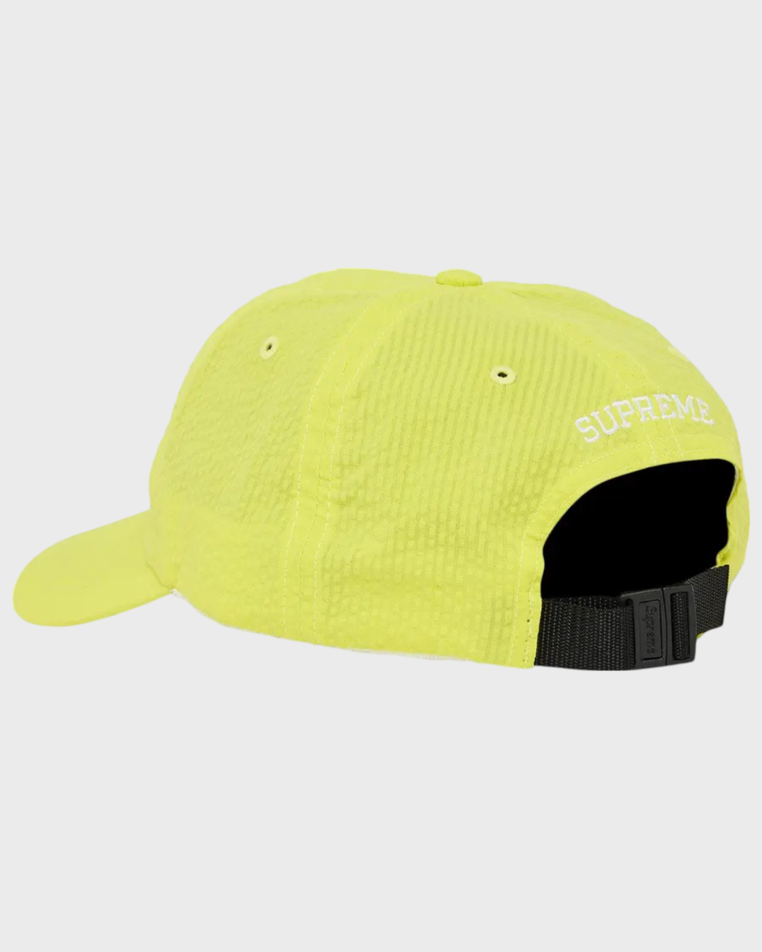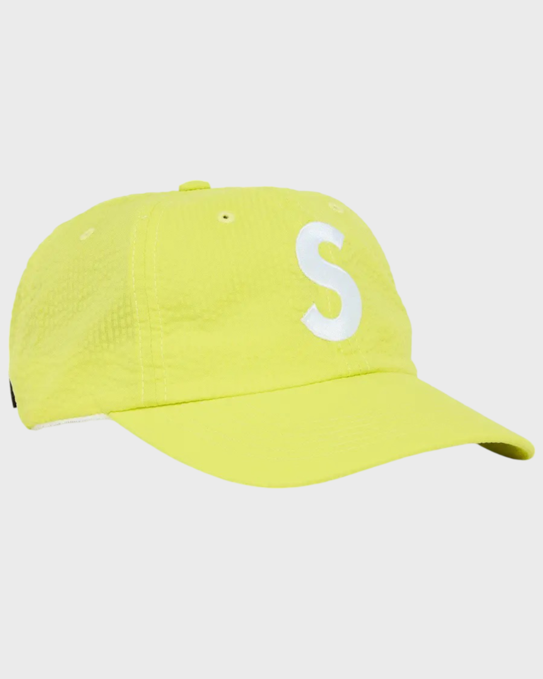 The Supreme Seersucker S Logo 6-Panel Hat from the SS24 collection,This hat features a seersucker fabric design with Supreme’s signature "S" logo on the front.