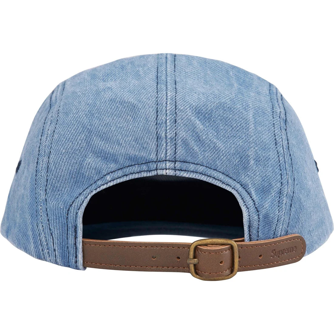 All cotton chino twill Supreme camp cap with custom debossed leather strap closure.