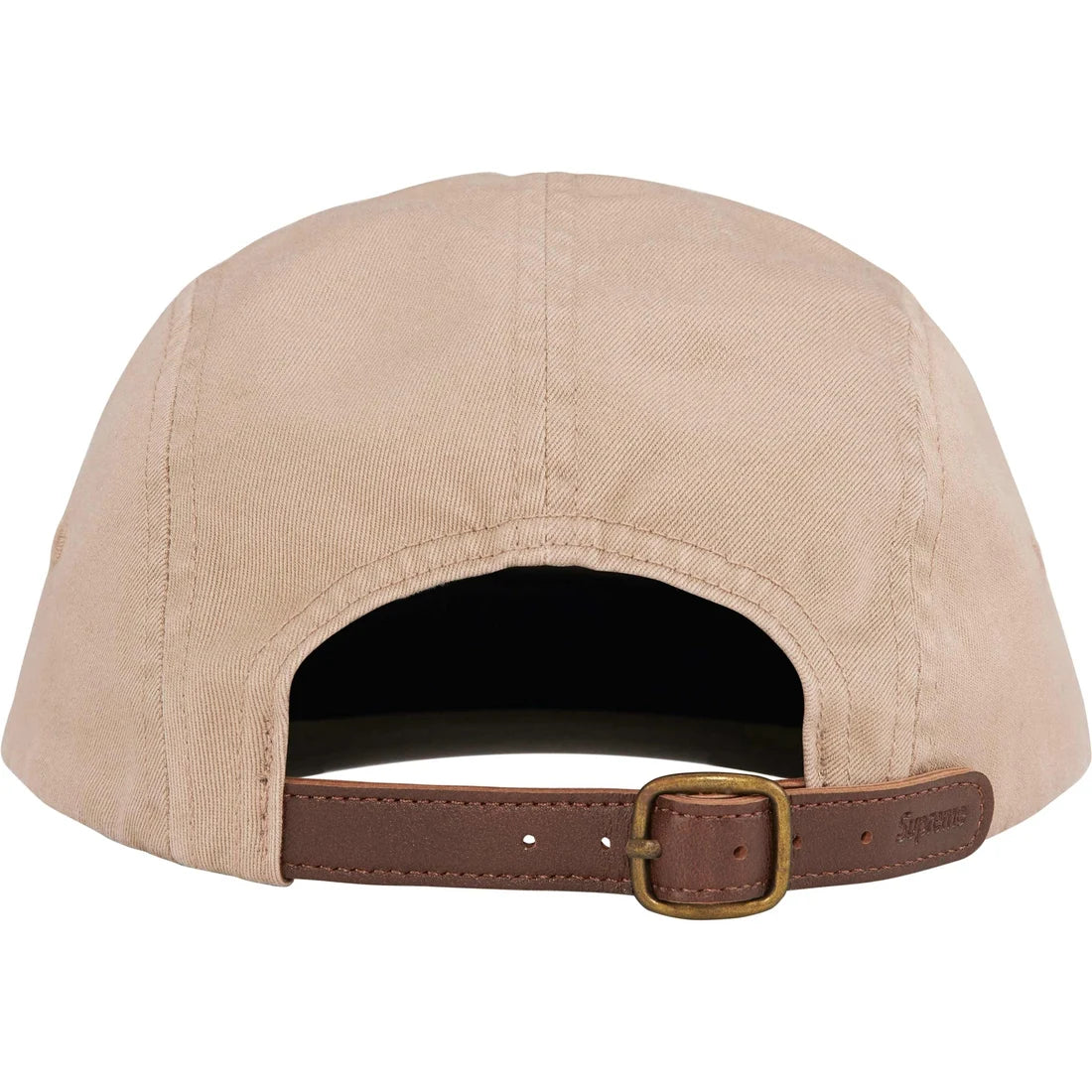 All cotton chino twill Supreme camp cap with custom debossed leather strap closure.