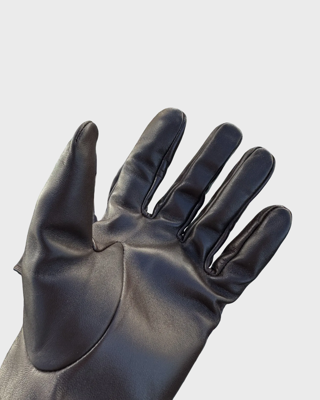 Leather gloves with a luxury feel; may include metal snaps or logo patches for added flair. -