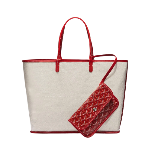 The Saint Louis GM bag is made from Goyardine and is unlined. It is extremely light and completely reversible. Wear it showing the Goyardine fabric or inside out, showing the linen and cotton mix. Its two leather handles with their progressive thickness mean it can be worn in different ways. It has a removable inside pocket attached to one of the handles for quick and easy access.