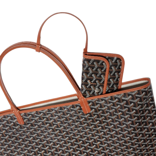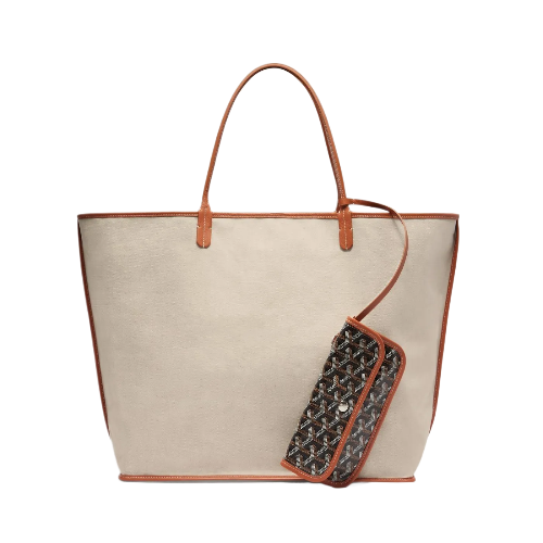The Saint Louis GM bag is made from Goyardine and is unlined. It is extremely light and completely reversible. Wear it showing the Goyardine fabric or inside out, showing the linen and cotton mix. Its two leather handles with their progressive thickness mean it can be worn in different ways. It has a removable inside pocket attached to one of the handles for quick and easy access.