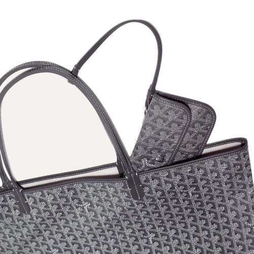 The Saint Louis GM bag is made from Goyardine and is unlined. It is extremely light and completely reversible. Wear it showing the Goyardine fabric or inside out, showing the linen and cotton mix. Its two leather handles with their progressive thickness mean it can be worn in different ways. It has a removable inside pocket attached to one of the handles for quick and easy access.